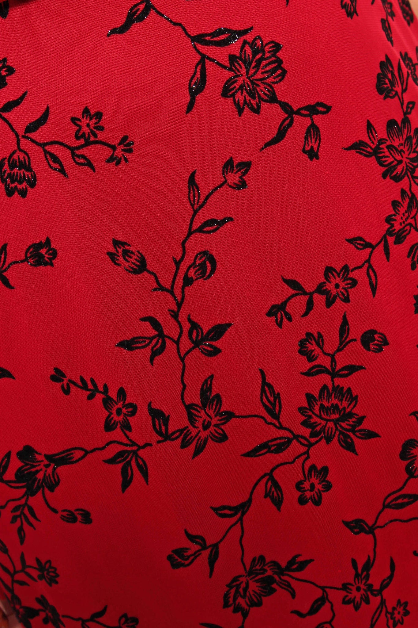 - Flocked velvet floral print with glitter accents