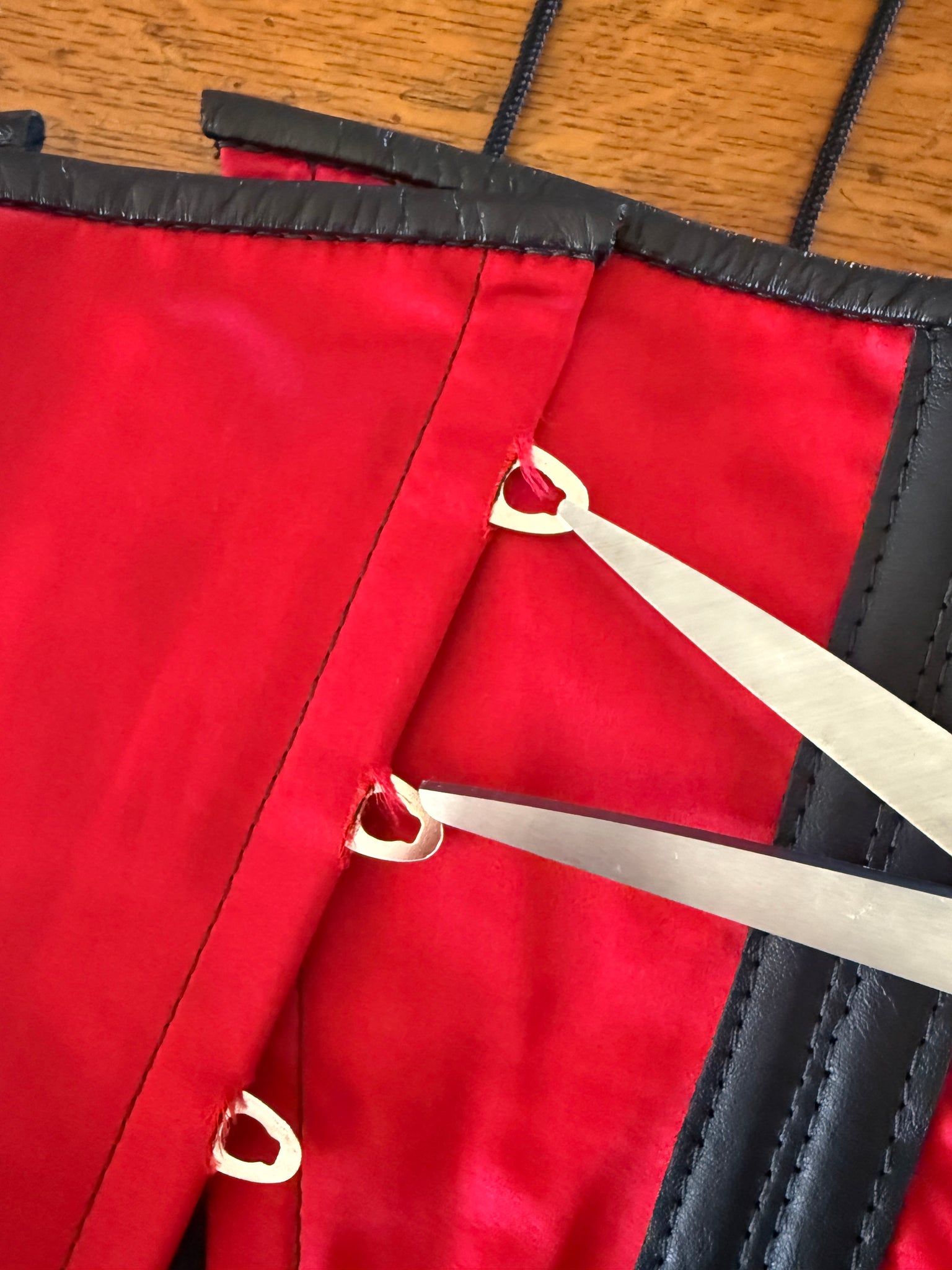 Note on fit: Corset was not pinned on model but did not fit super cinched. Adrianne is 5’10 33-25-36 with a modern dress size 2-4, letter size XS/S and a size 26 in jeans.