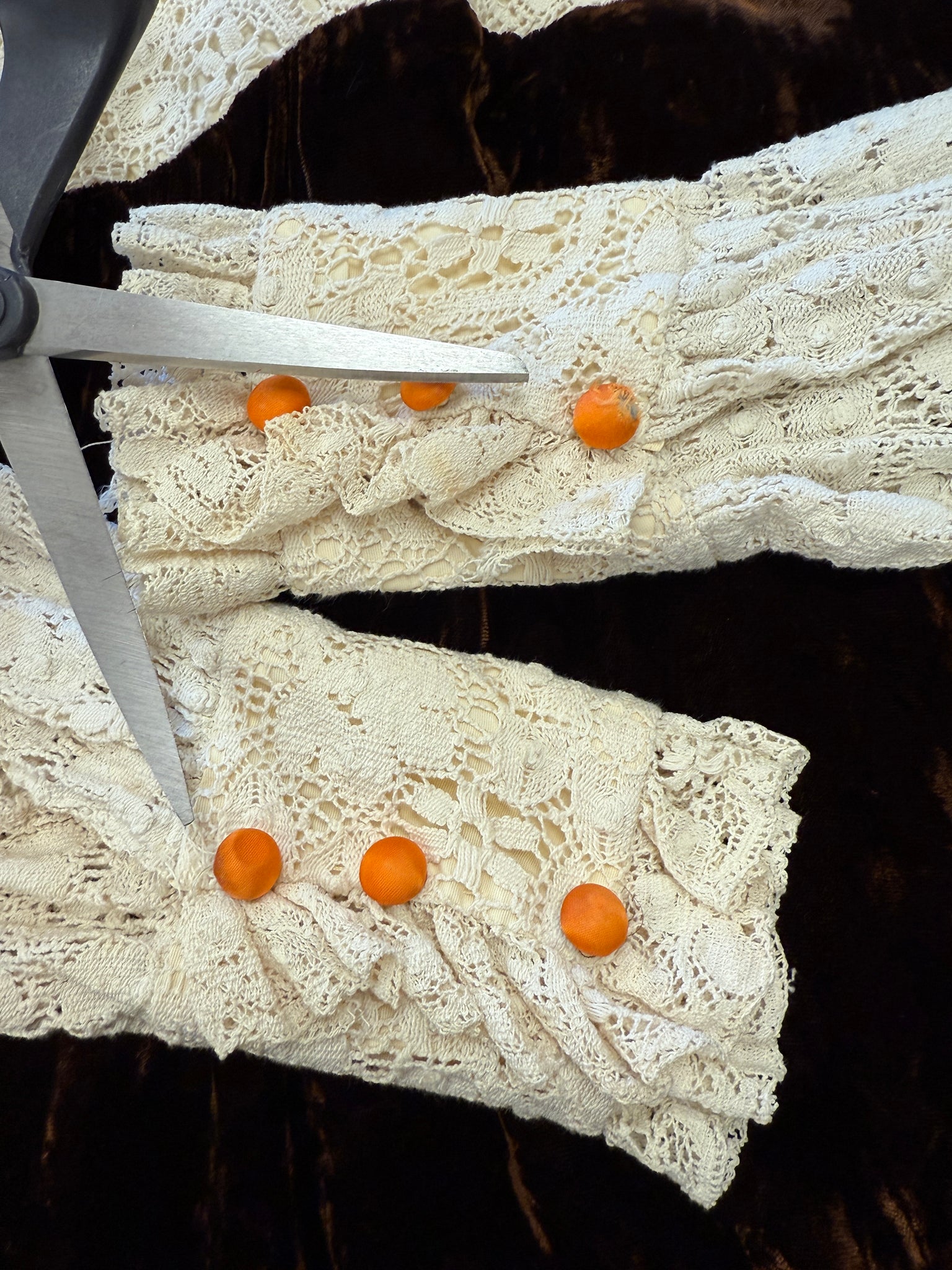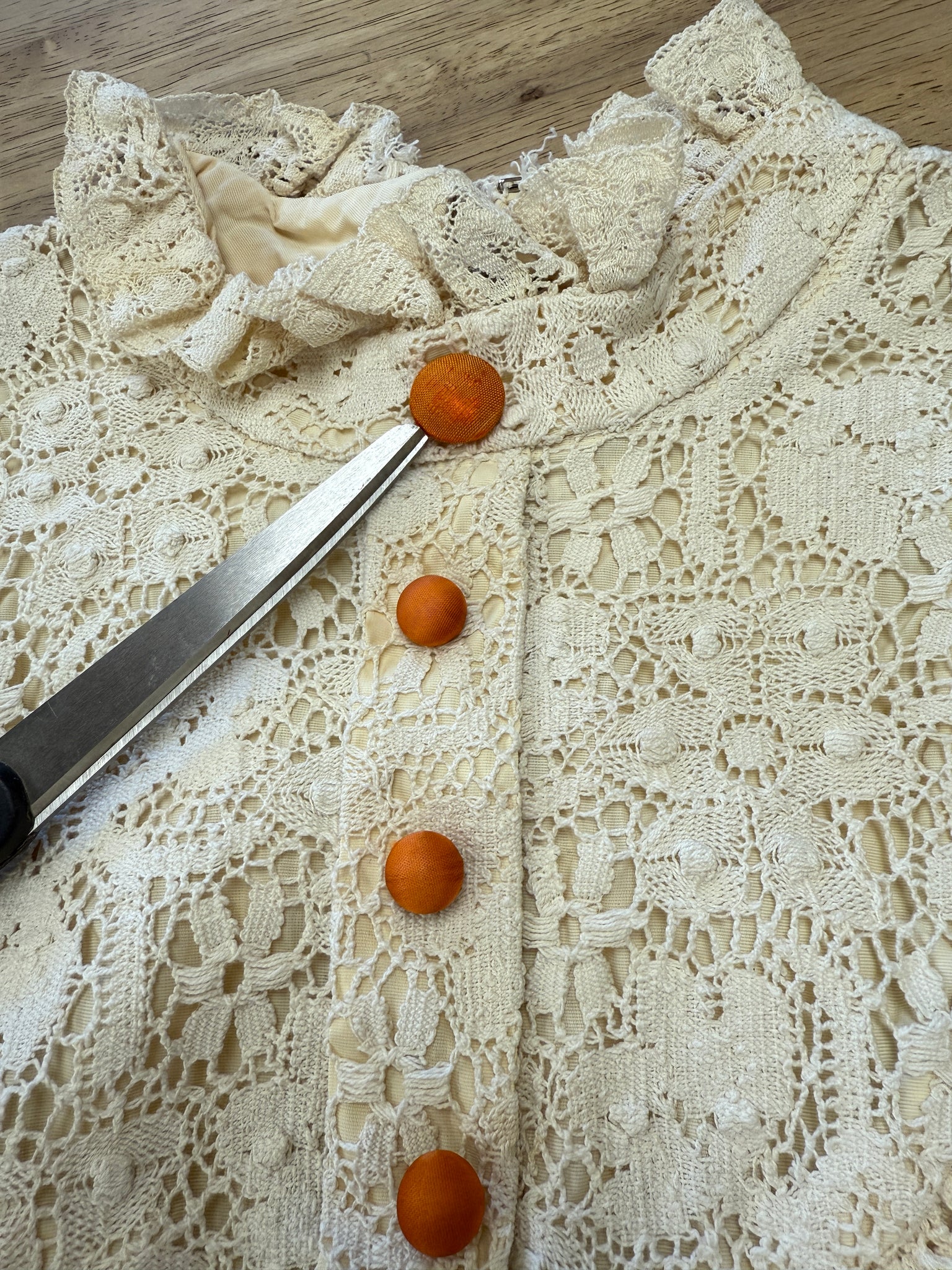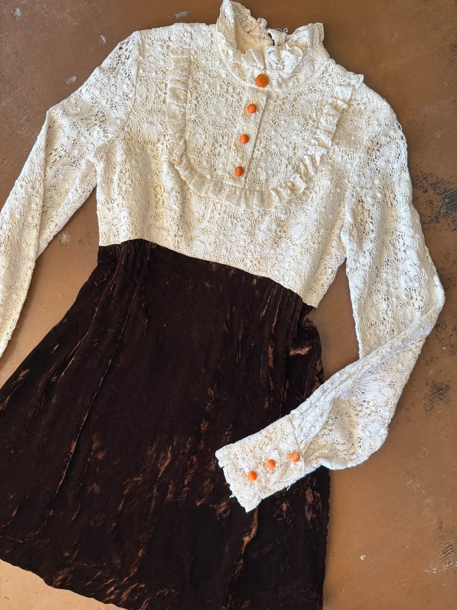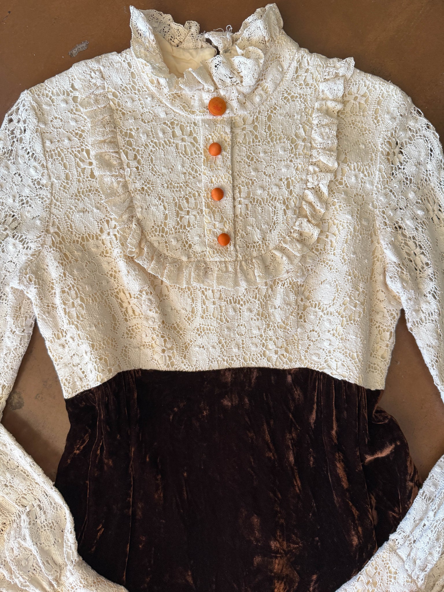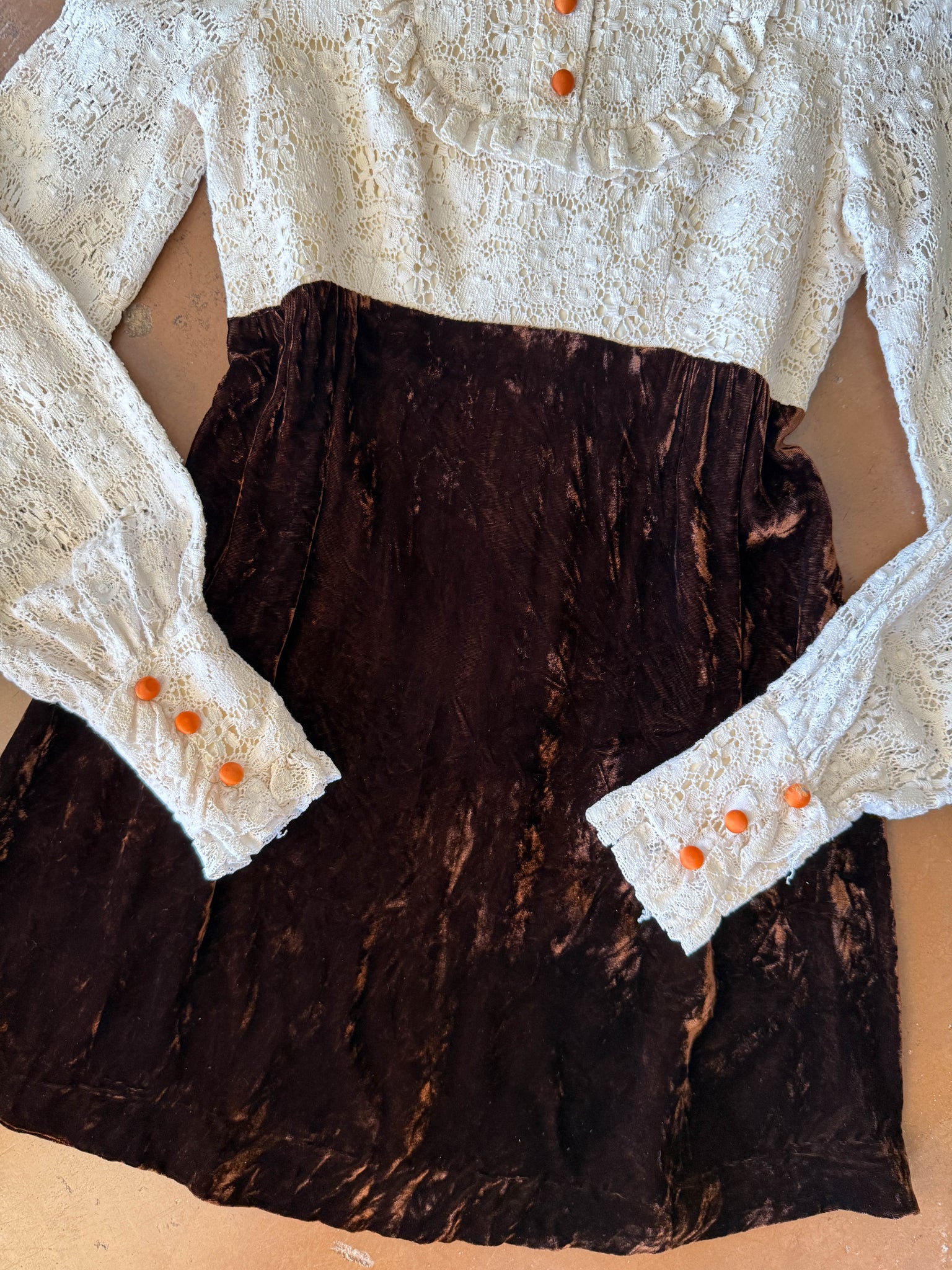 material: feels like cotton lace, rayon velvet, buttons, metal zipper
