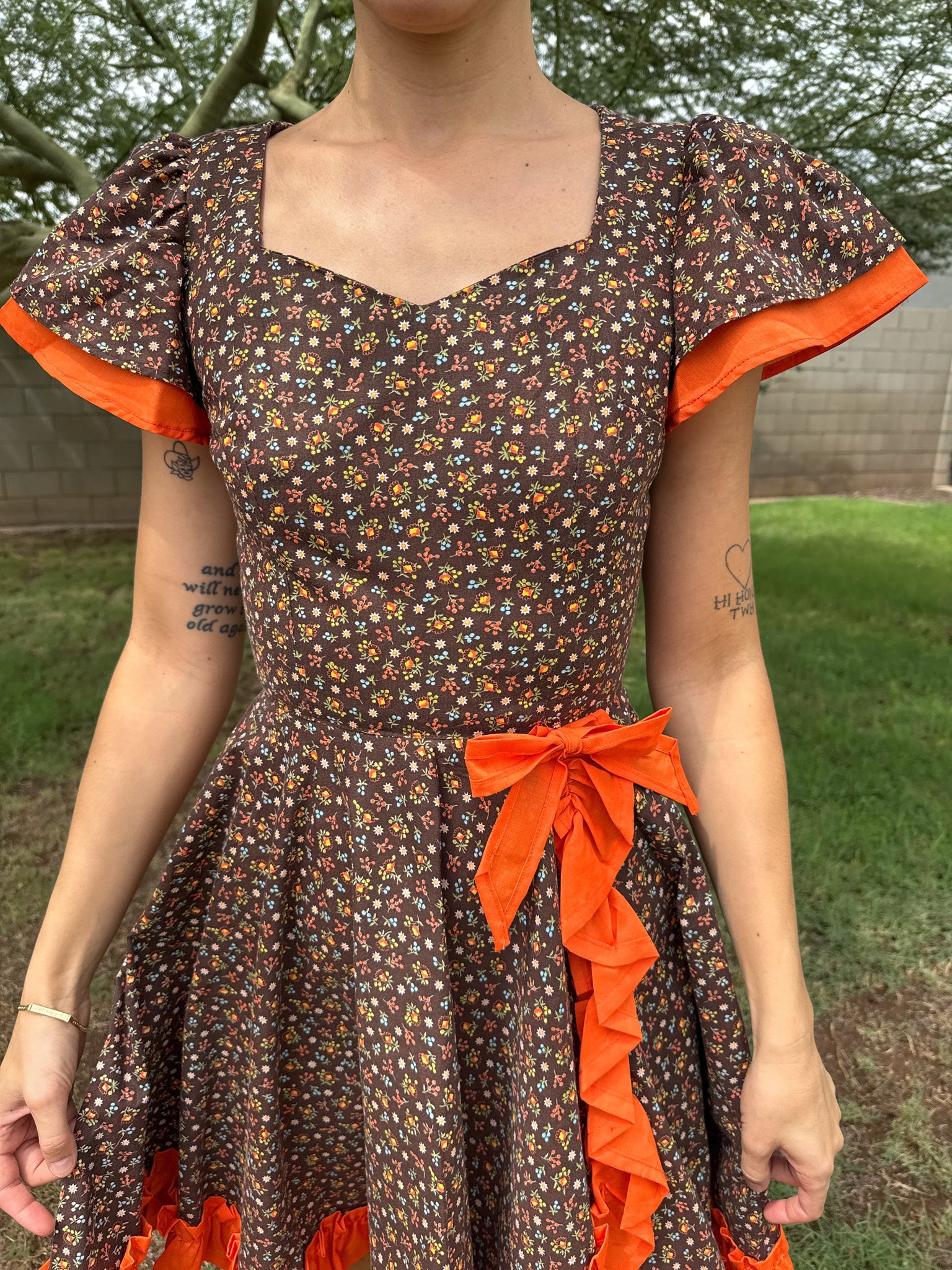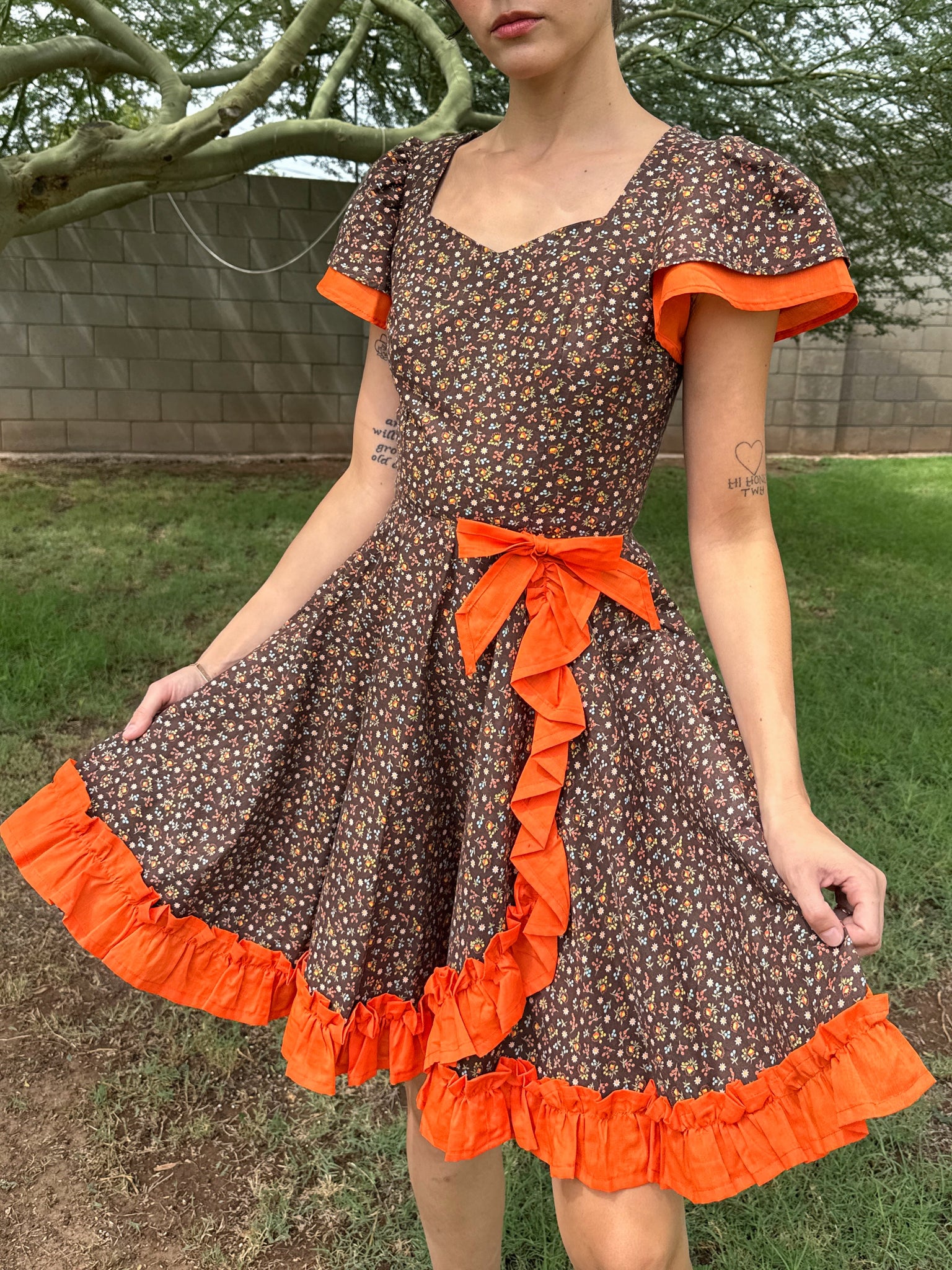 - Orange ruffle trim