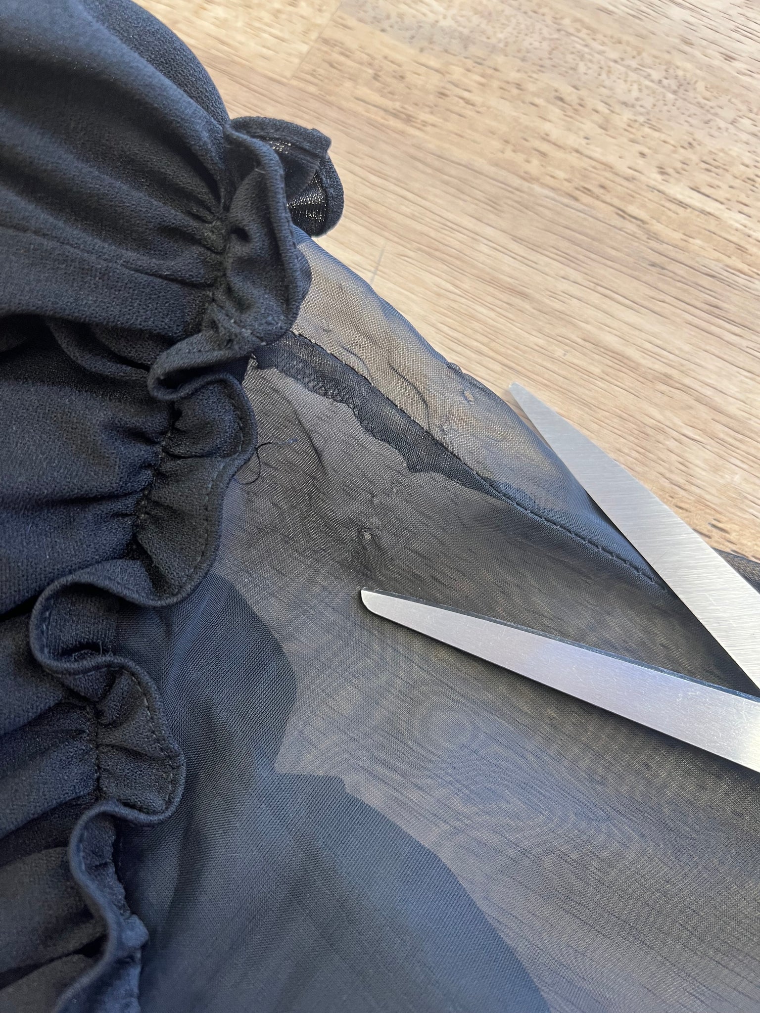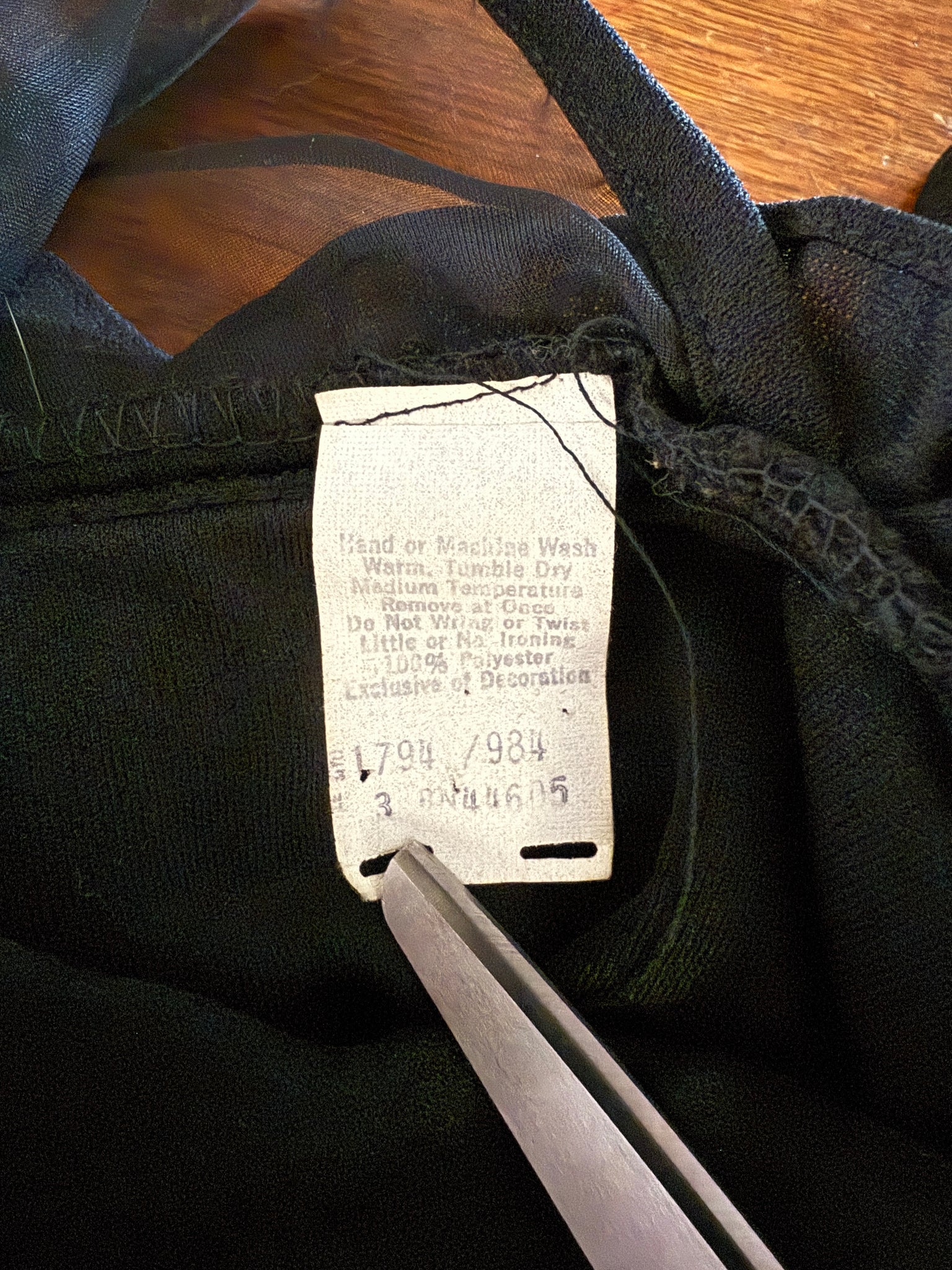 Great vintage condition: an area of pinprick holes around the right shoulder area; some markings on the back bottom right of the skirt; elastic is starting to stretch out but still has a lot of stretch left, waist measurements have been adjusted accordingly.