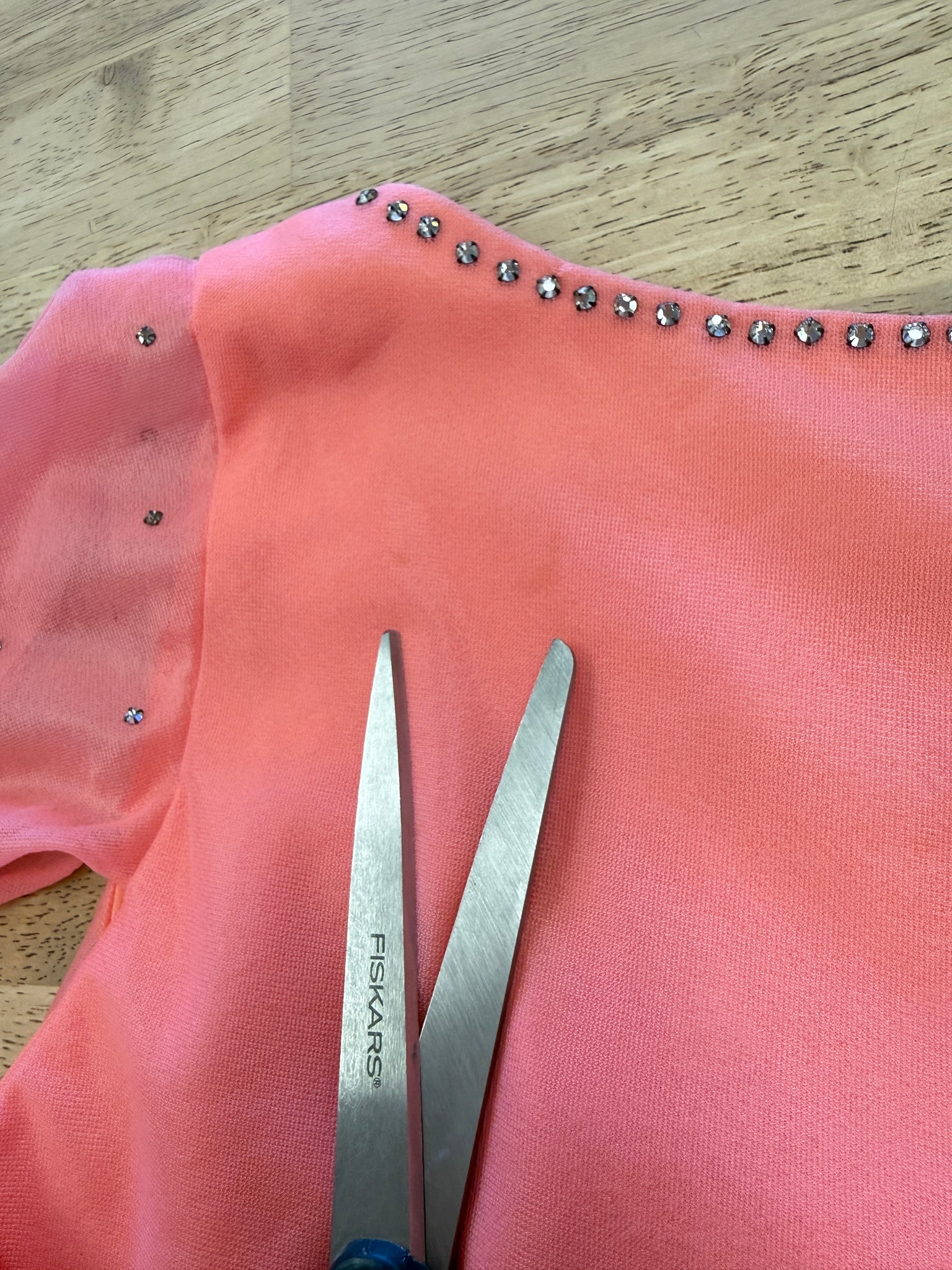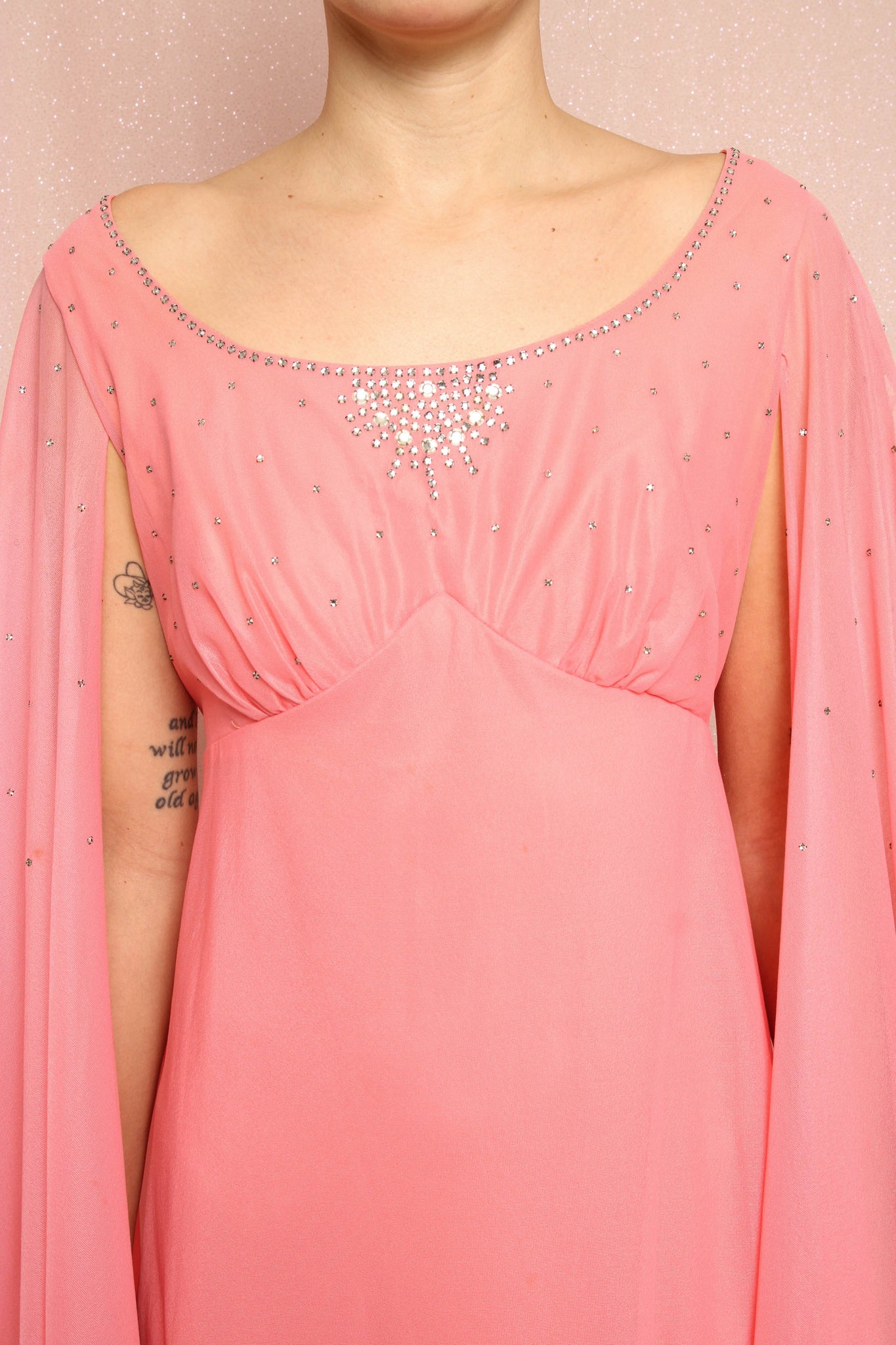 - Rhinestone details on the neckline and bodice