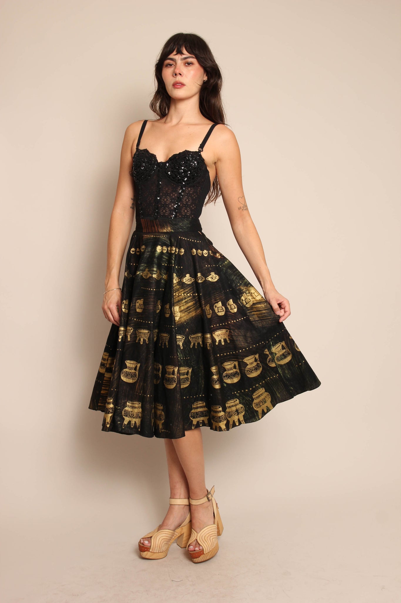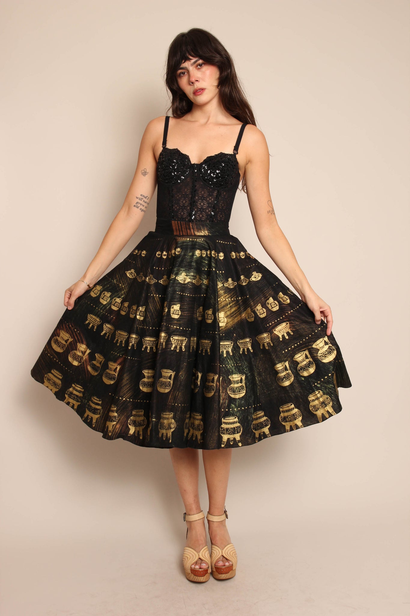 Note: these traditional Mexican circle skirts all have a similar apron type waist tie. The design can leave an opening on the sides sometimes, a petticoat might be desired.