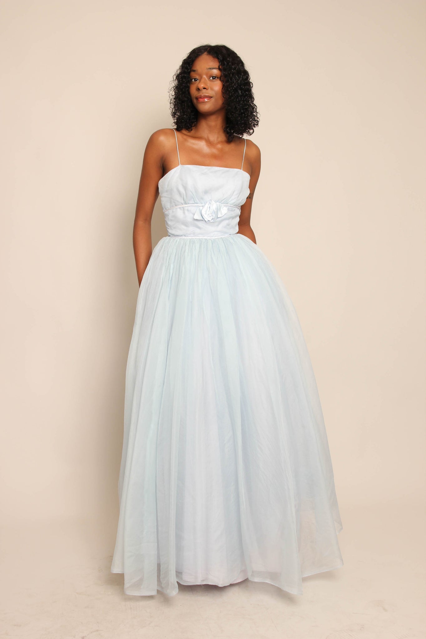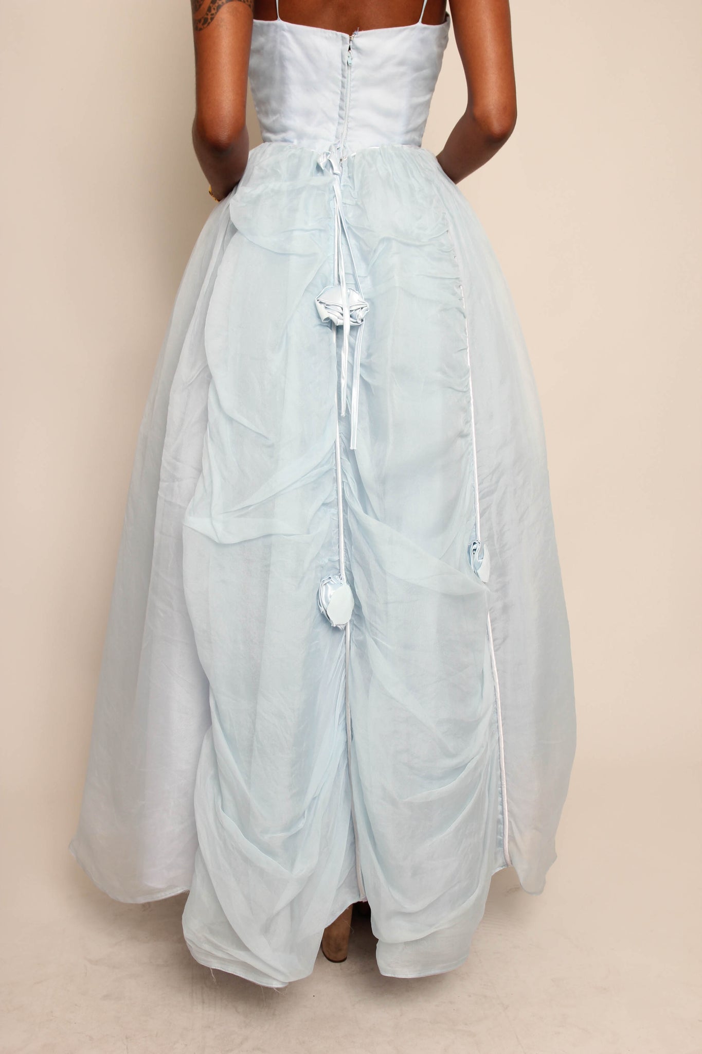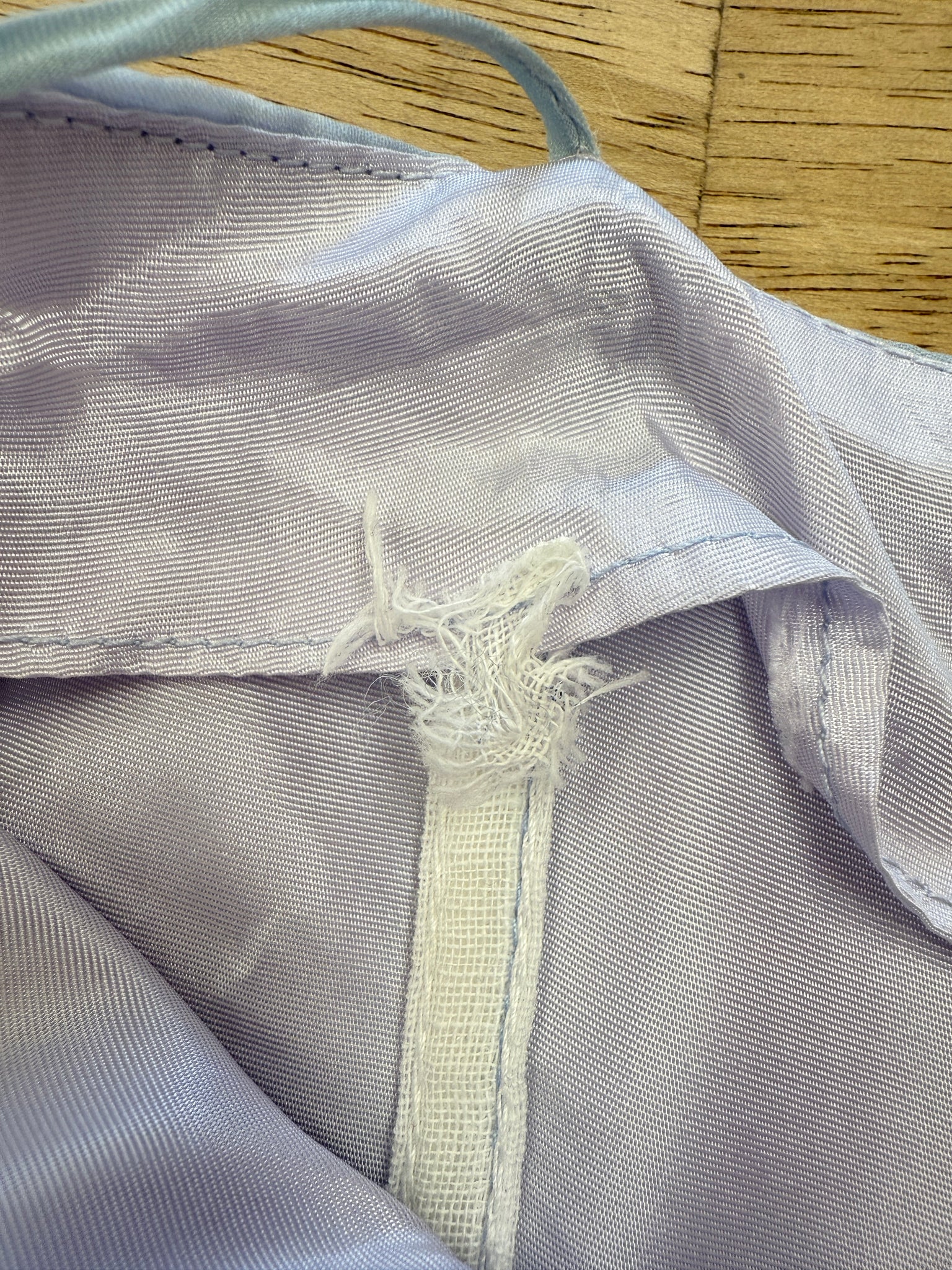 Good vintage condition: satin roses could use a good steaming to open up the buds more; small marking on the satin waist trim.