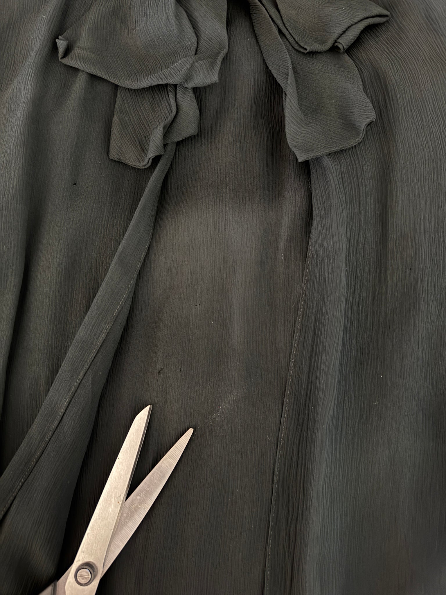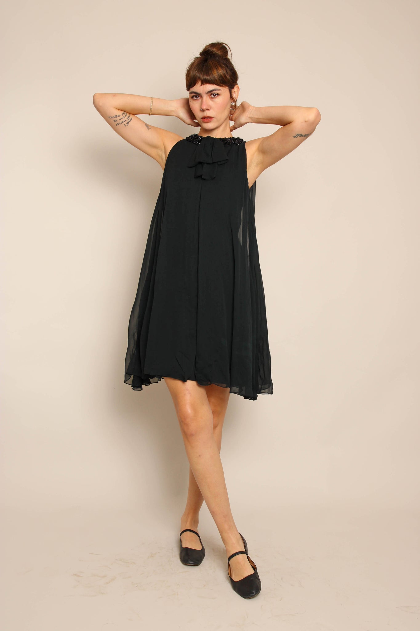 Great vintage condition: pinhead hole and super faint marking on the body of the dress around center waist that both get covered up by the outer chiffon layers.