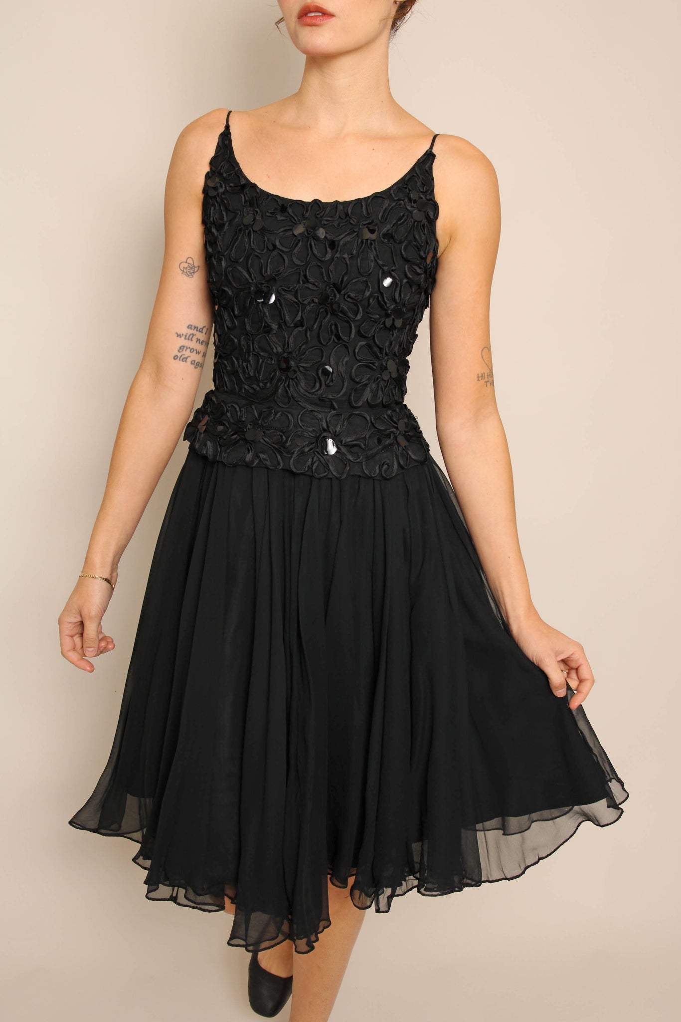 material: feels like rayon chiffon, sequins, acetate lining, zipper