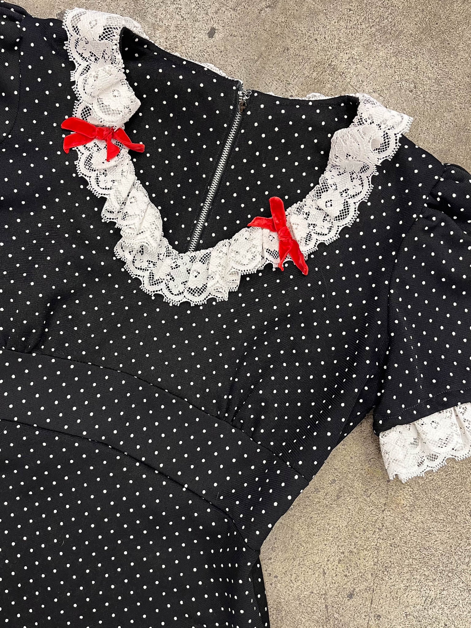 material: polyester, lace, velvet, metal zipper