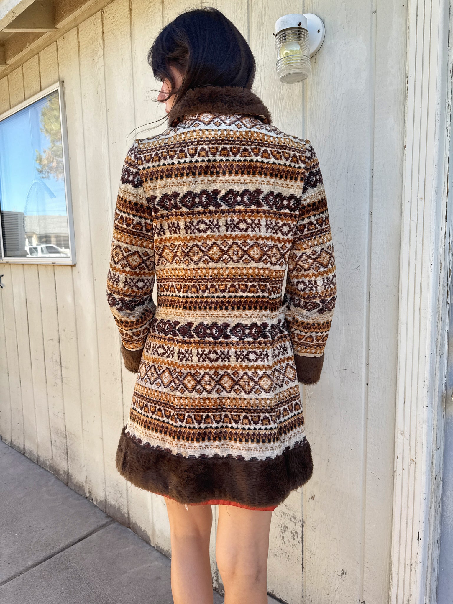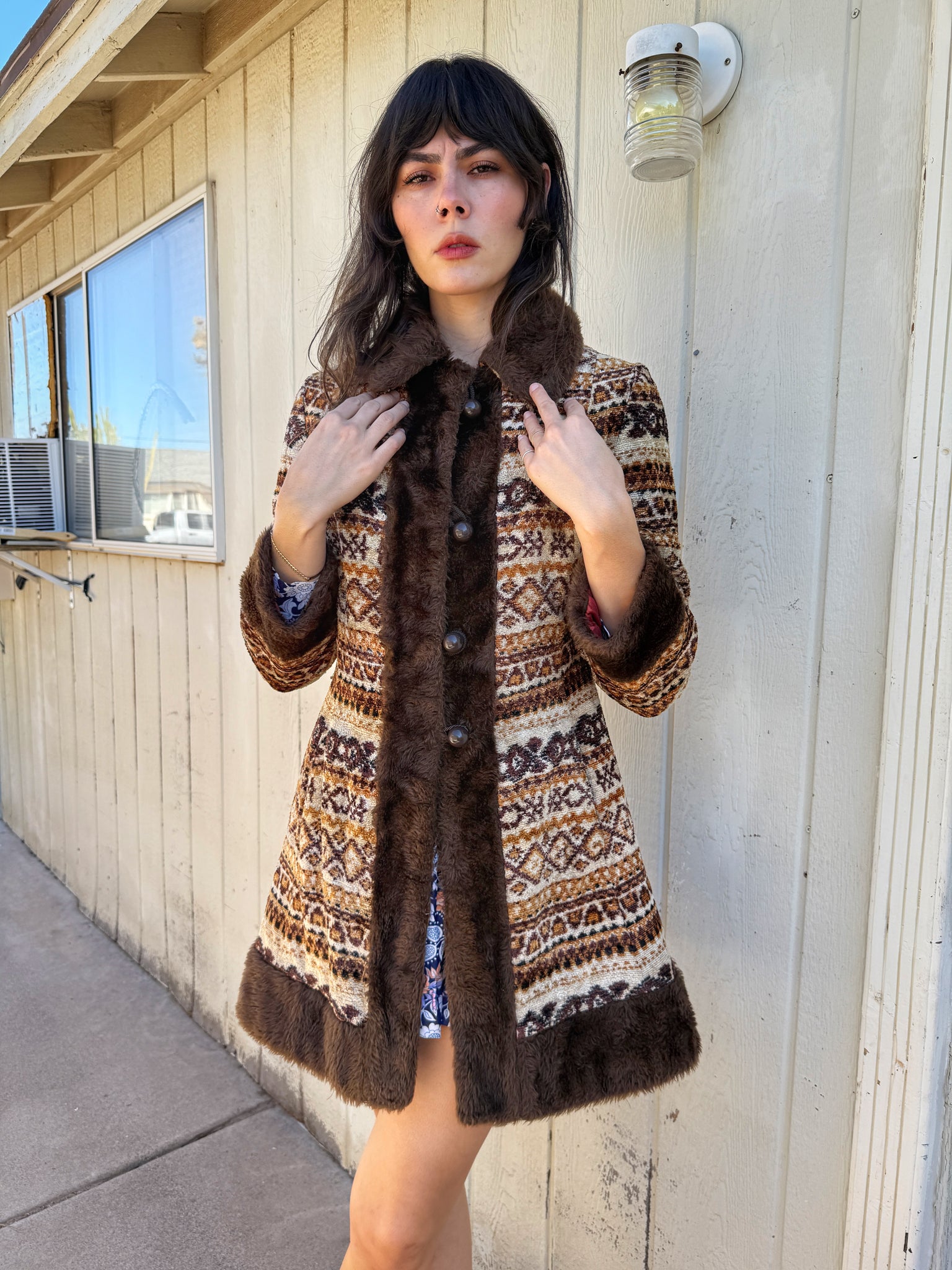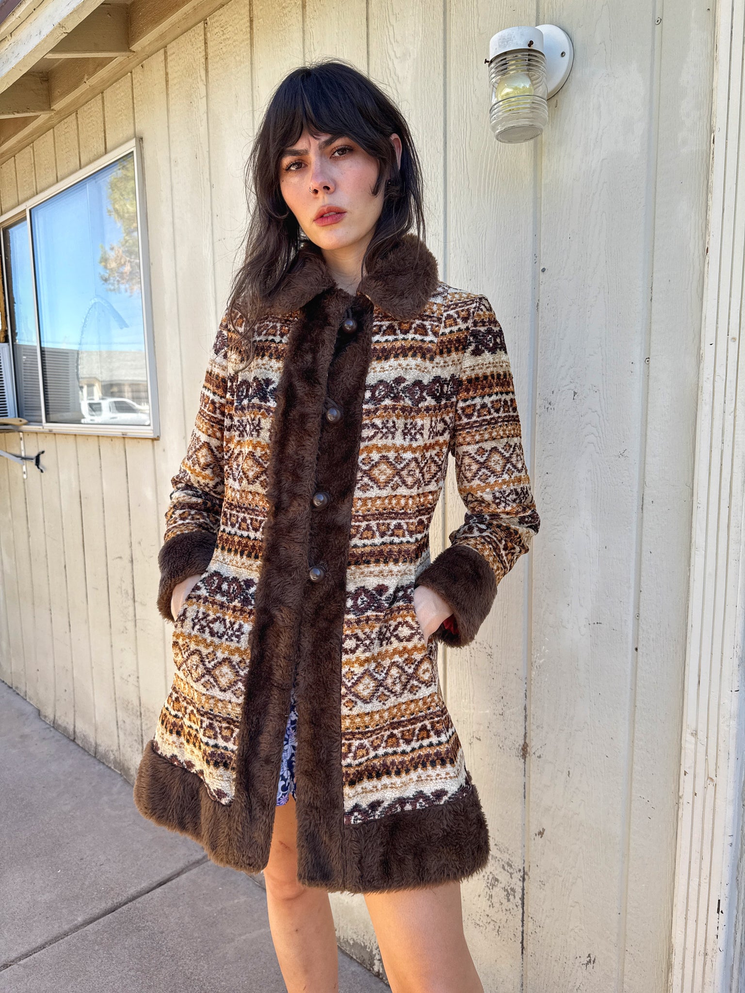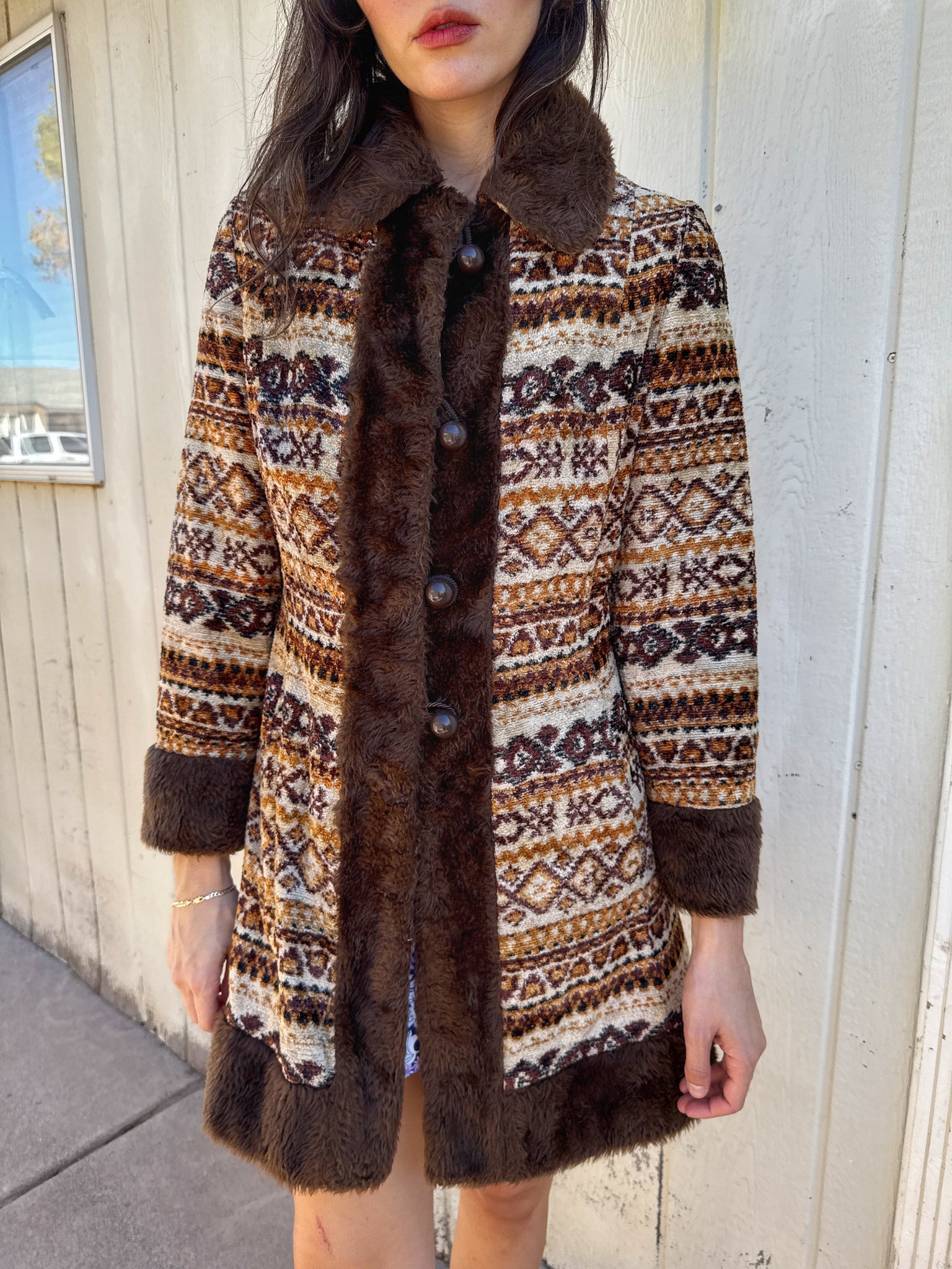 material: feels like acrylic, acrylic faux fur, buttons, cord, nylon quilted lining