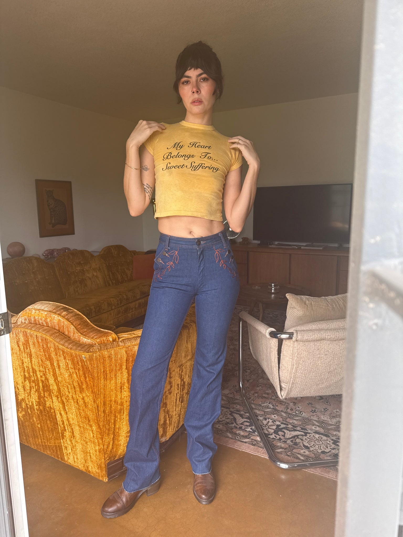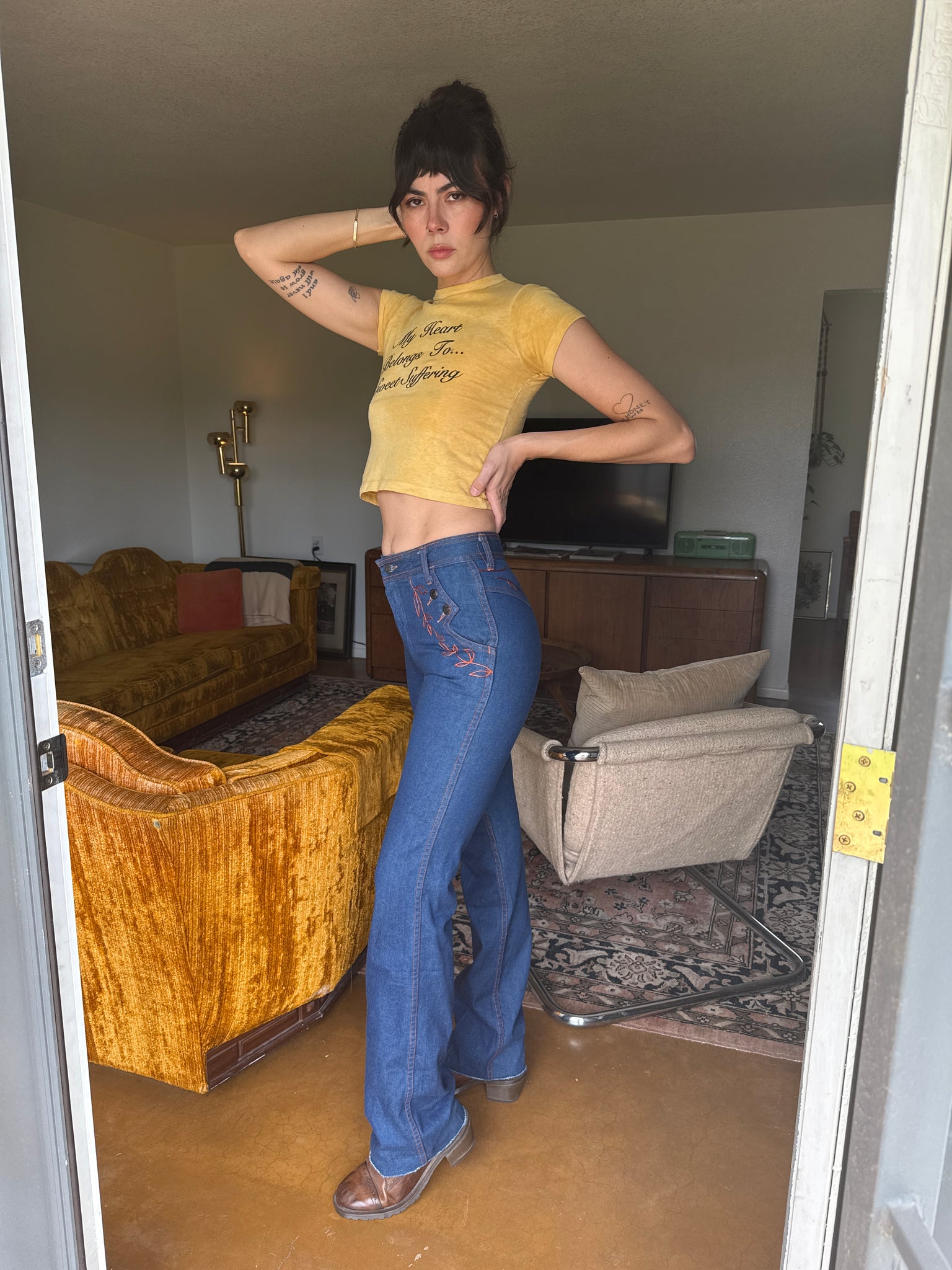 suggested letter / number size: XS 25 or 26 waist (tag is marked a vintage 30 waist and Juniors size 9)