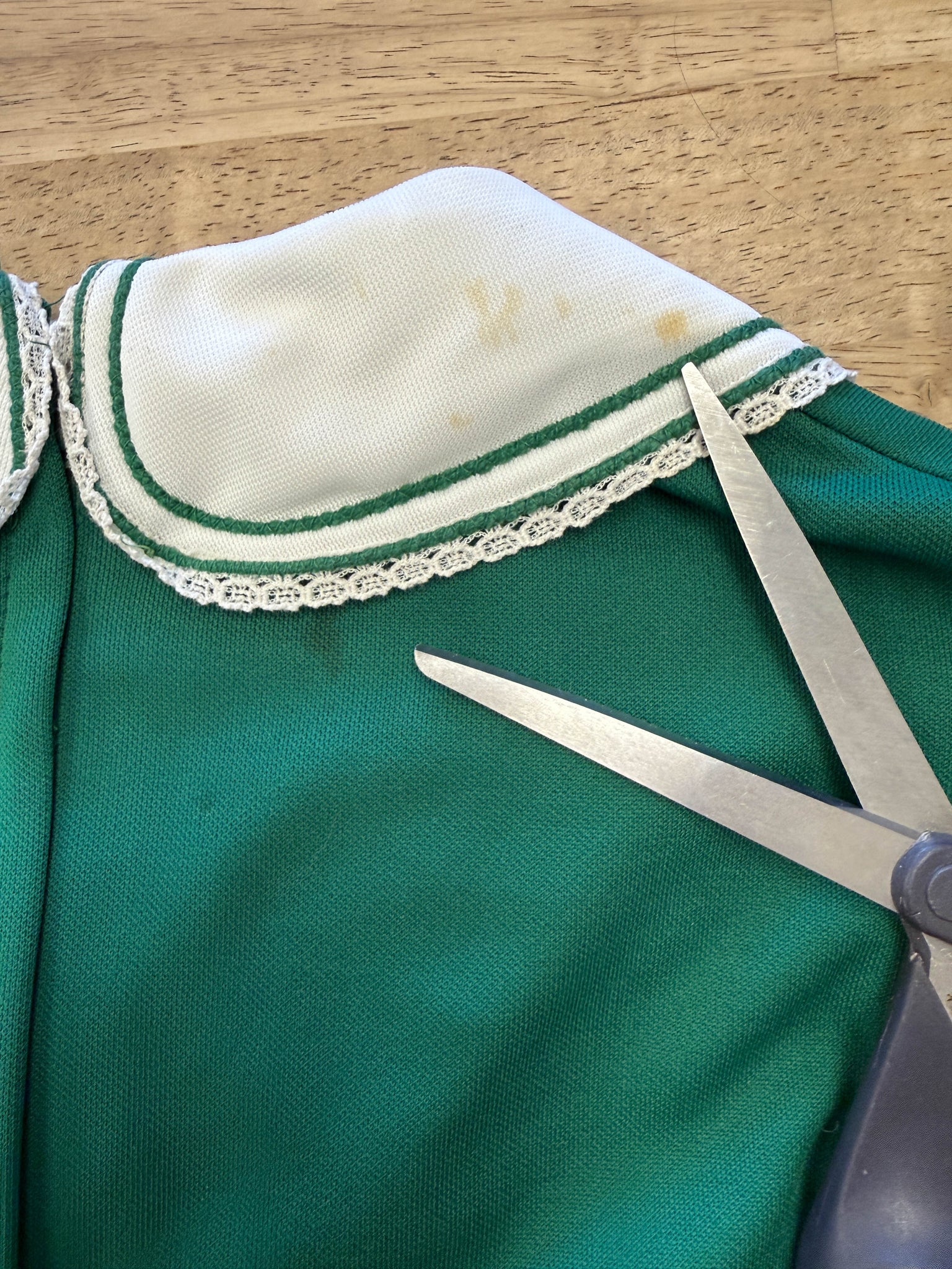 Great vintage condition: small area of faint spots on the back right side of the collar and shoulder.