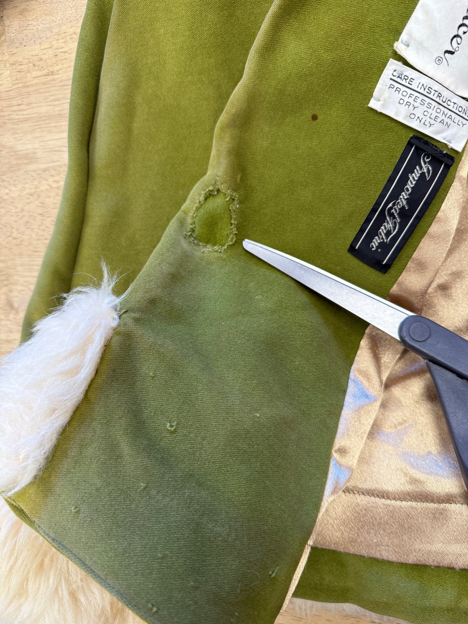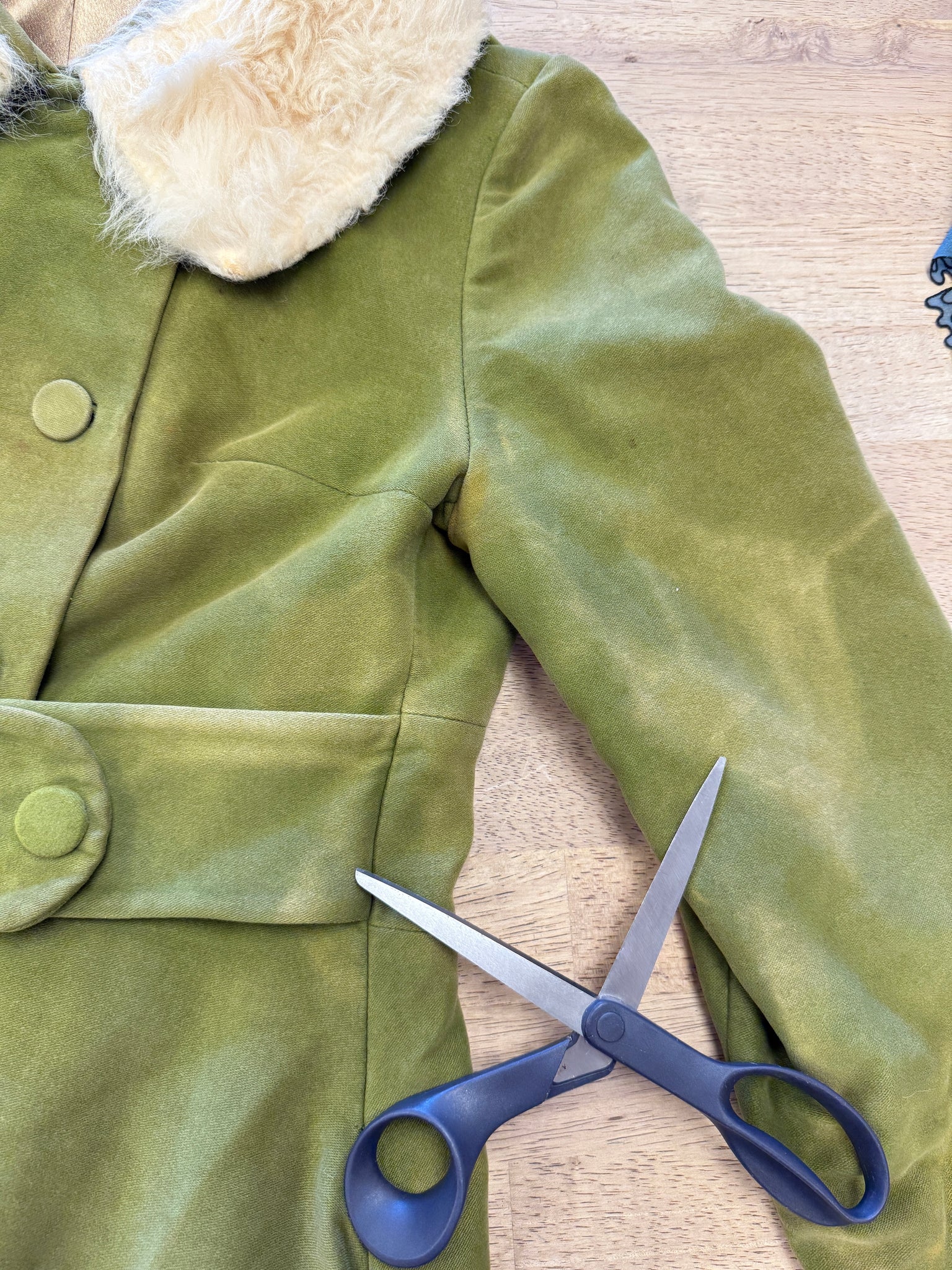 material: velvet, faux fur, buttons, snap buttons, buckle, satin acetate lining