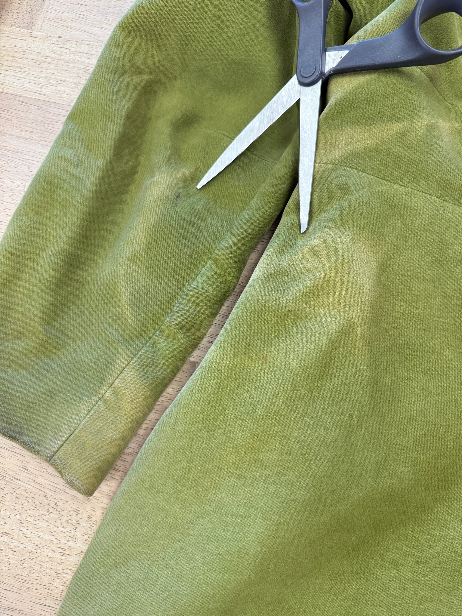Good as-is vintage condition: many light markings throughout the velvet; streaks of fading throughout the velvet.