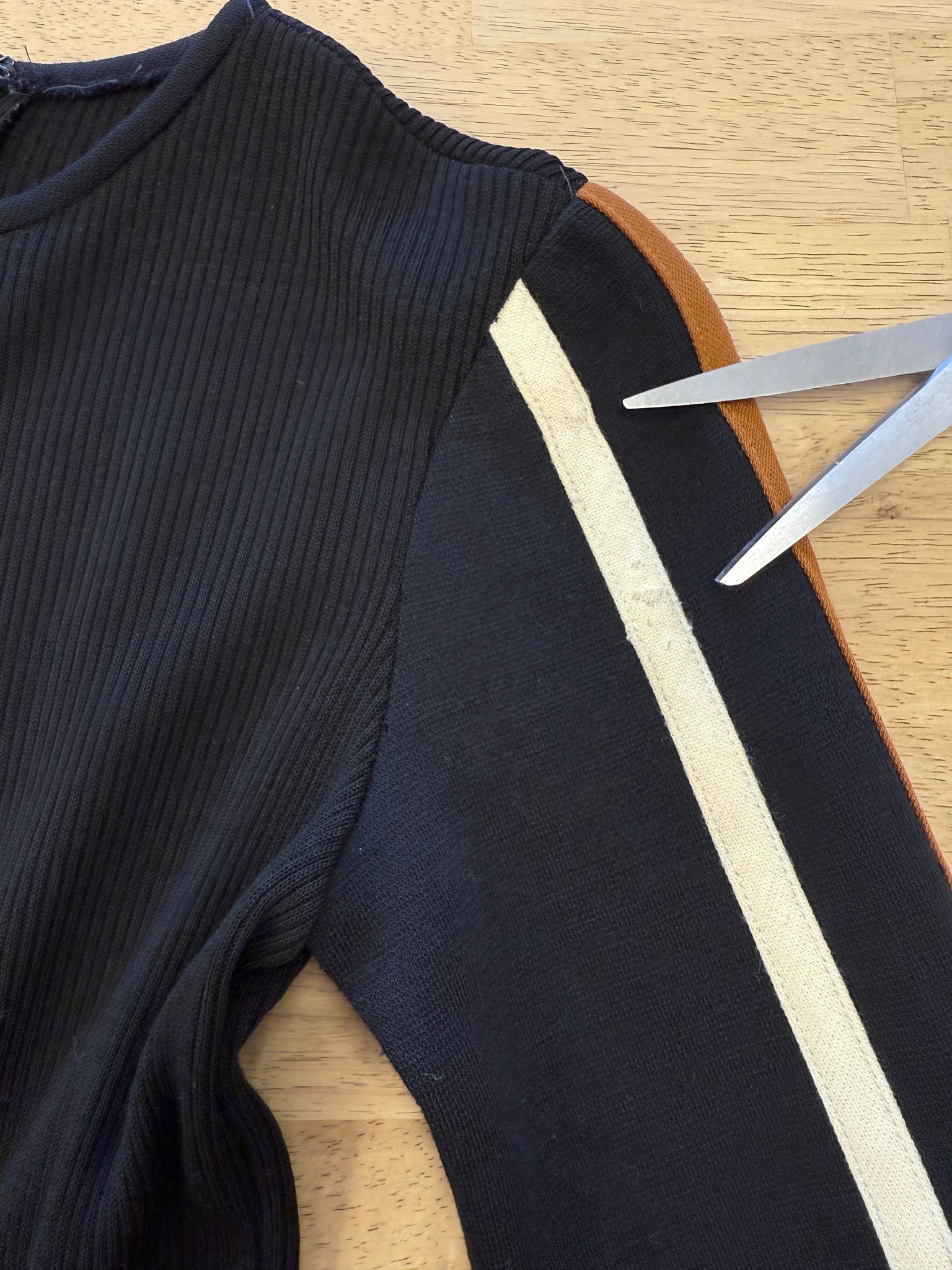 Great vintage condition: a few tiny wear marks on the cream stripe on the left sleeve around the shoulder/bicep area.