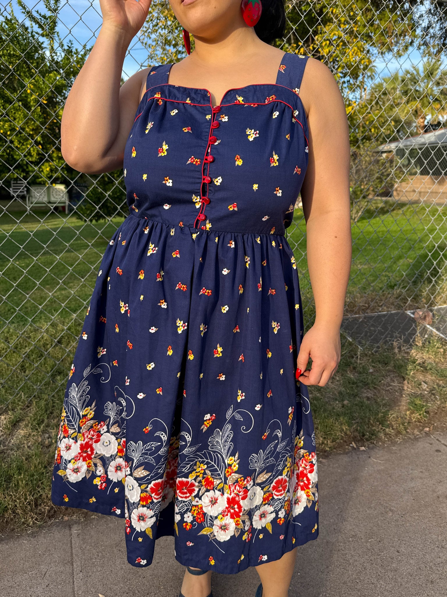Great vintage condition: some super faint markings on the skirt that get lost in the busy print.