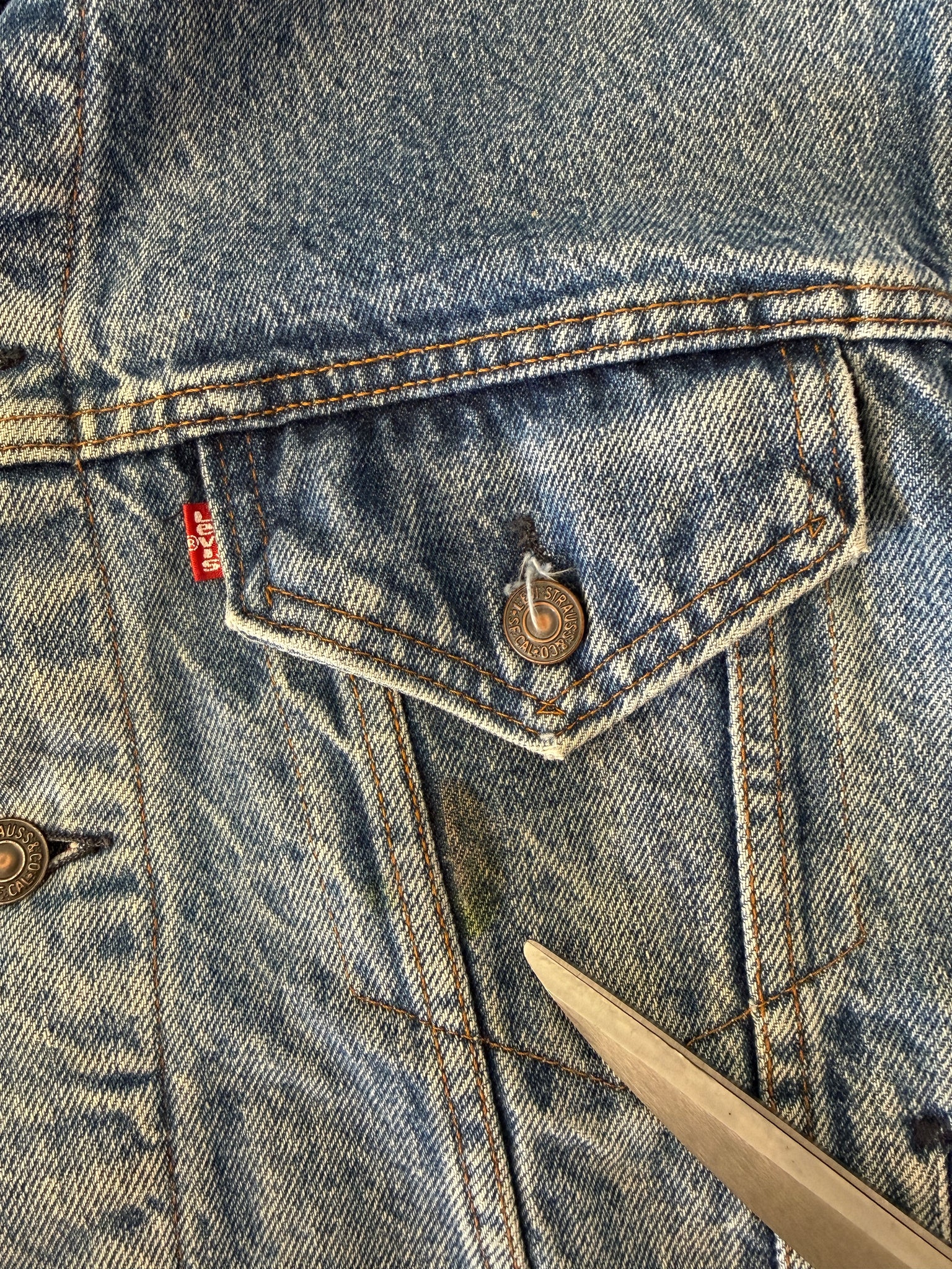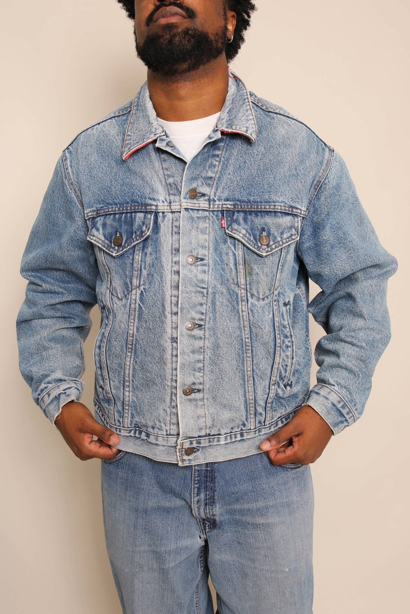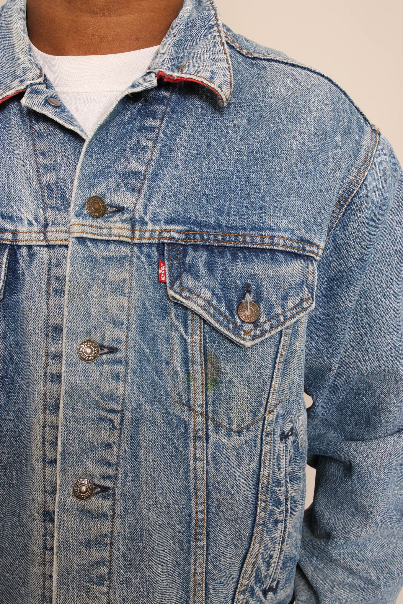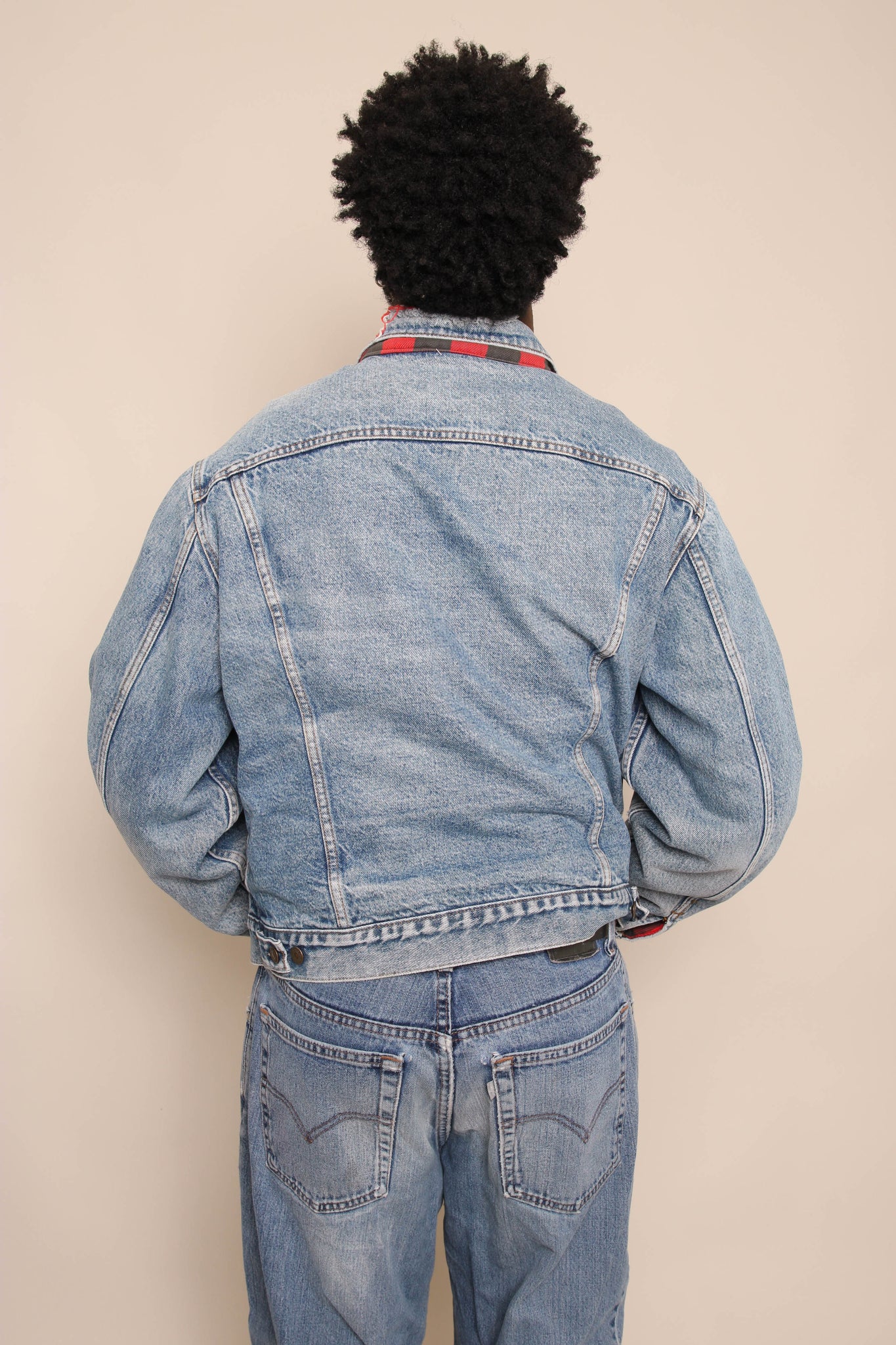 Great as-is vintage condition: small spot on left chest pocket; collar is frayed at the back of the neck; some frayed areas of the buffalo plaid inside lining.