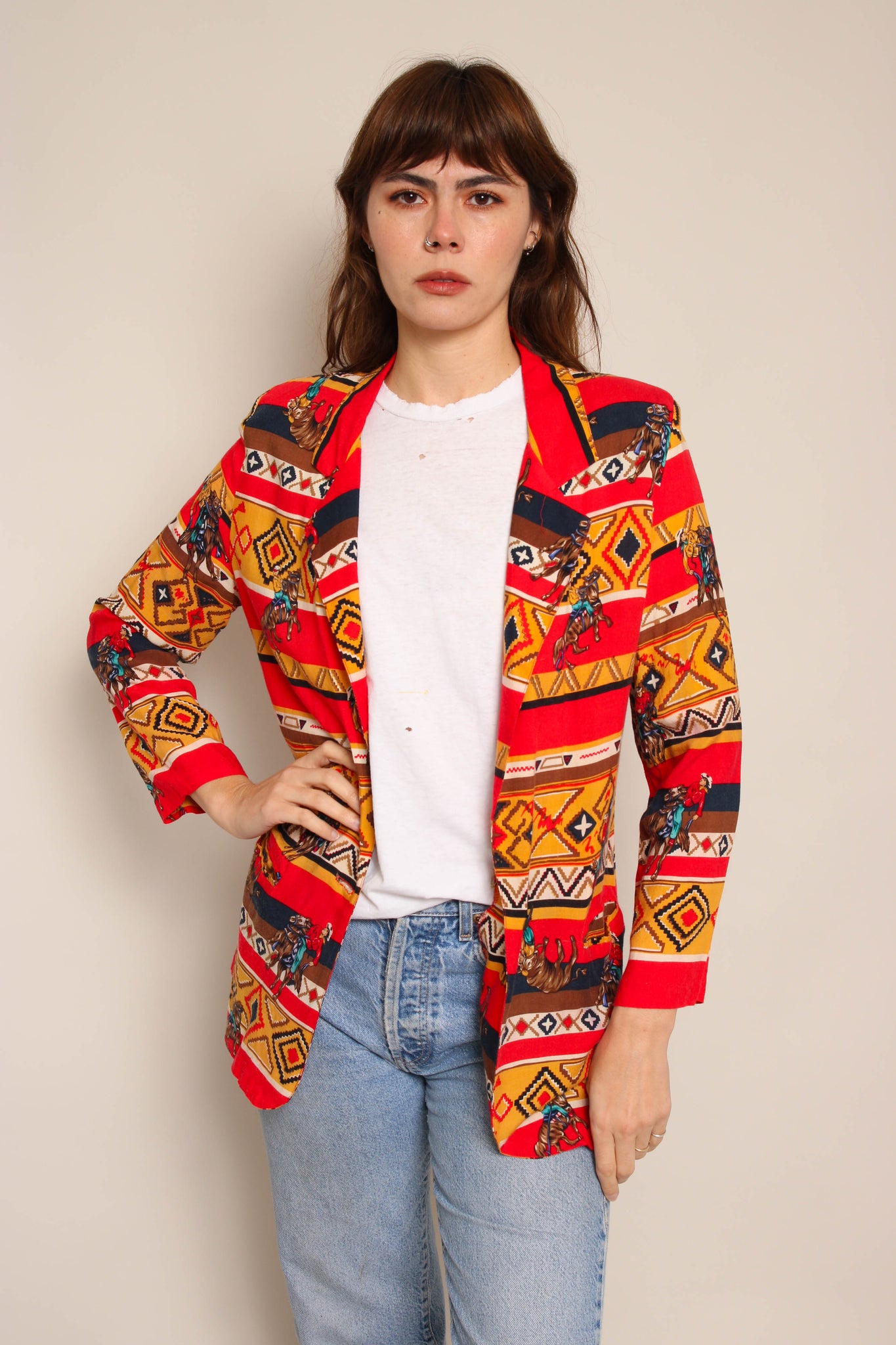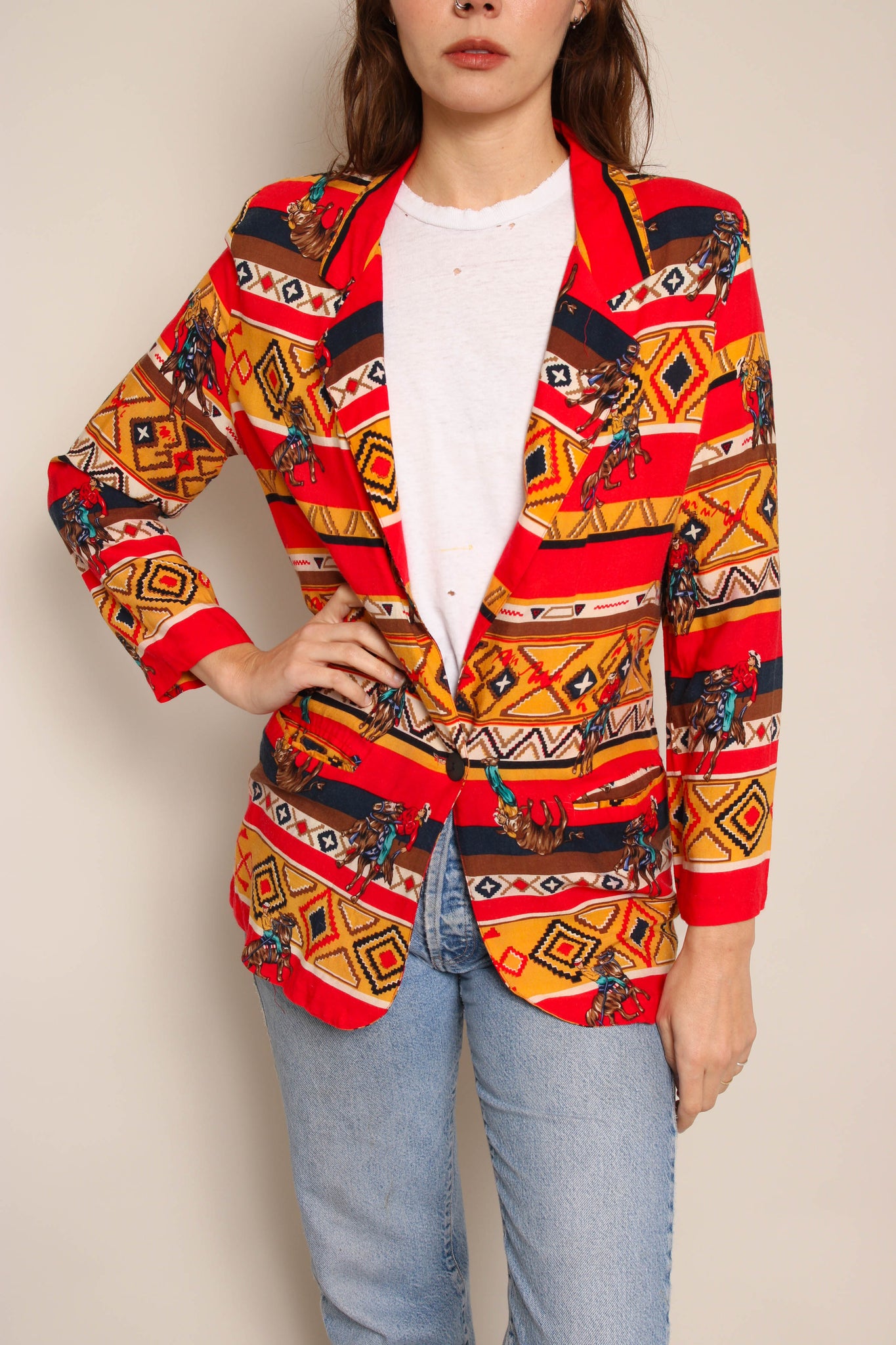 90s Novelty Print Western Blazer