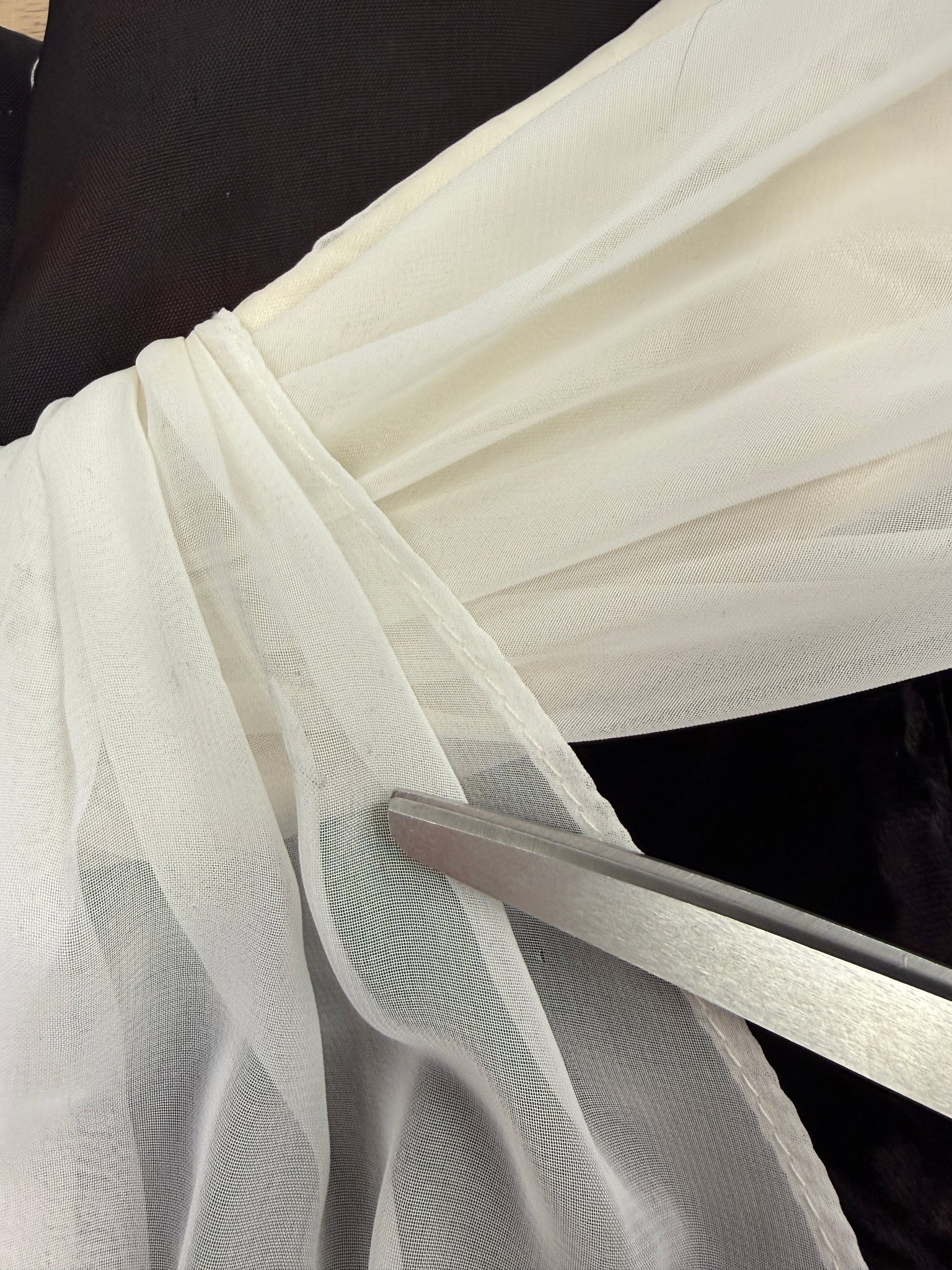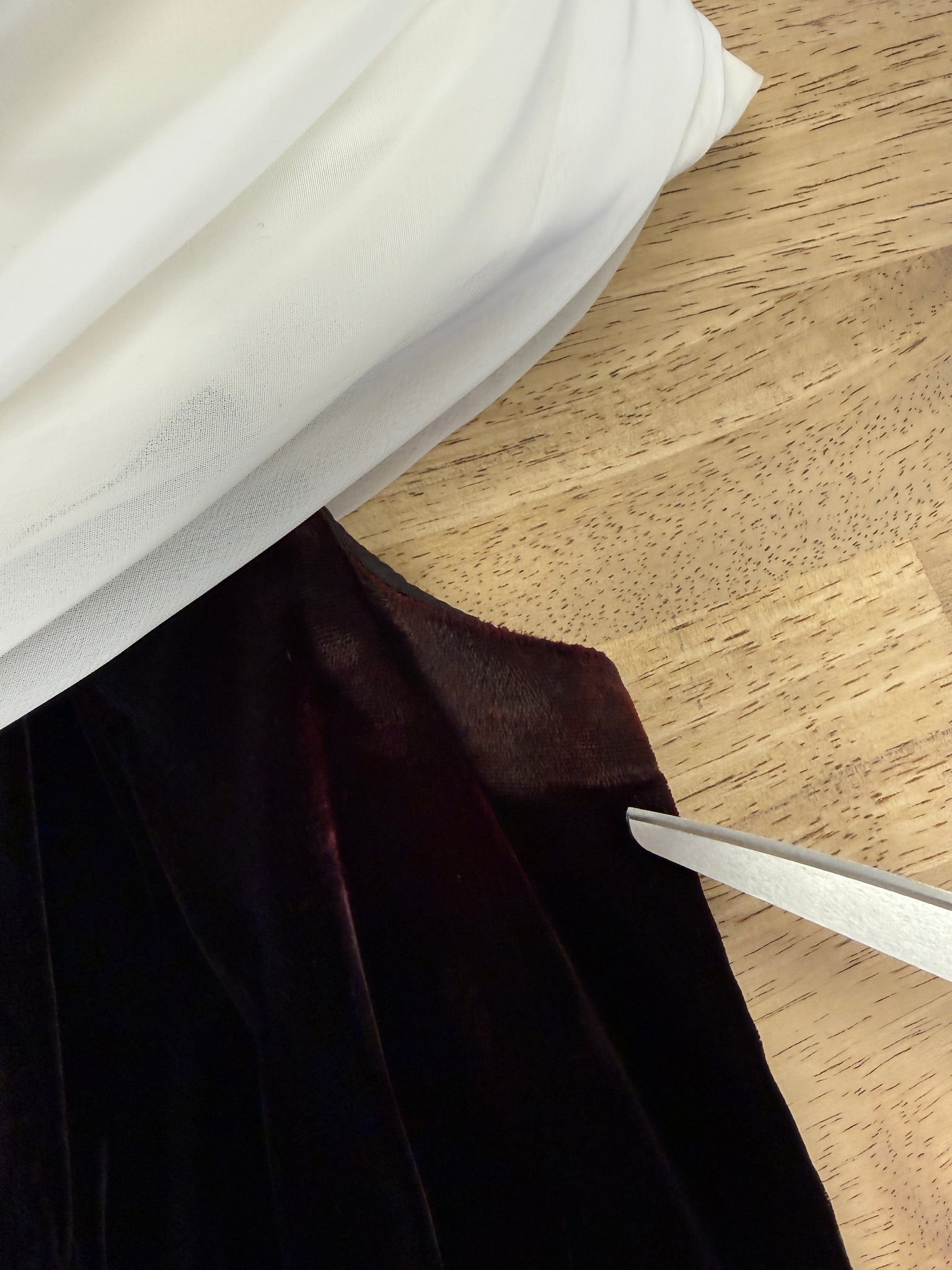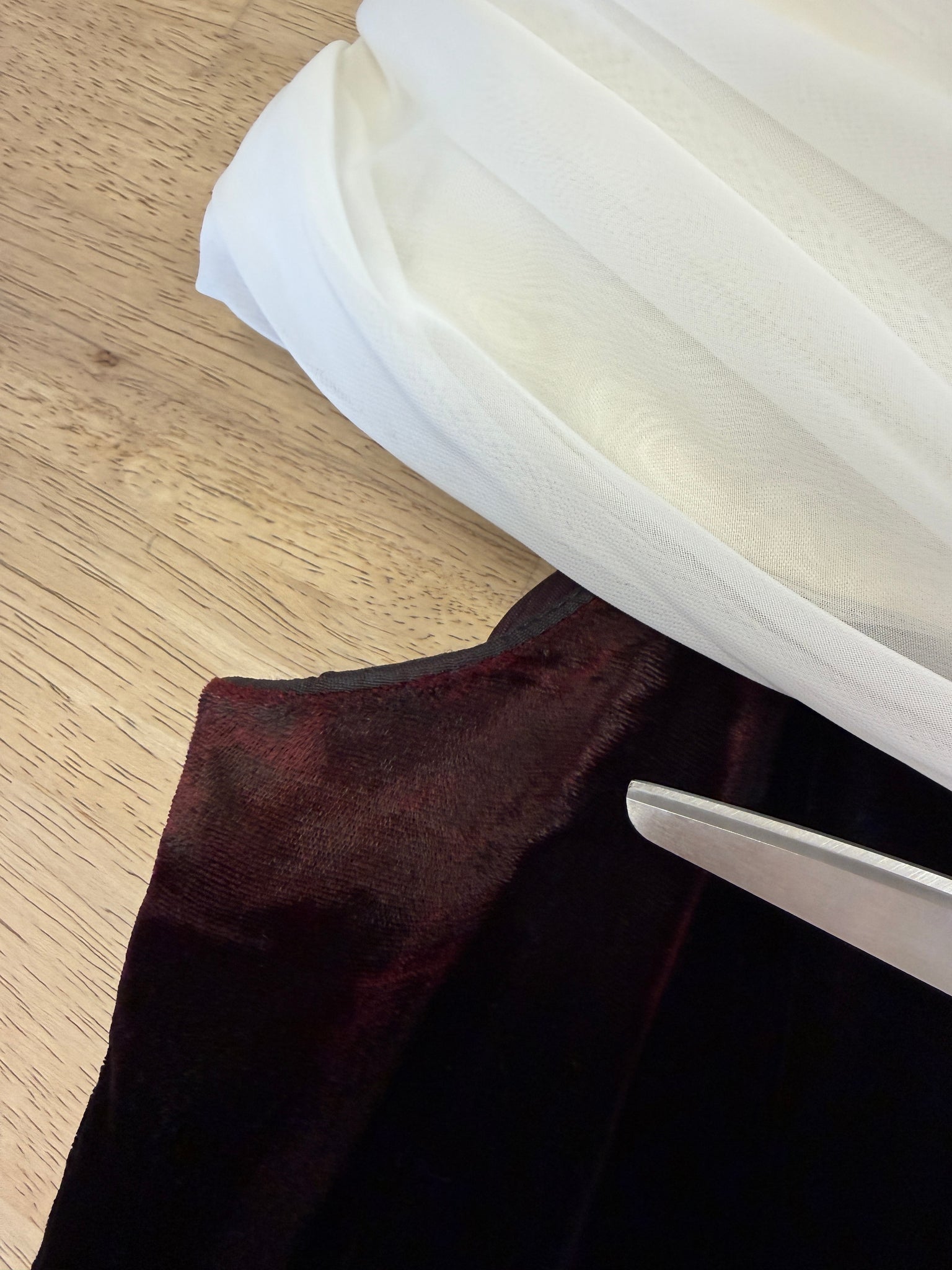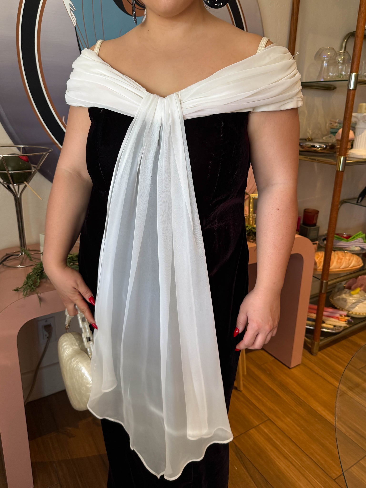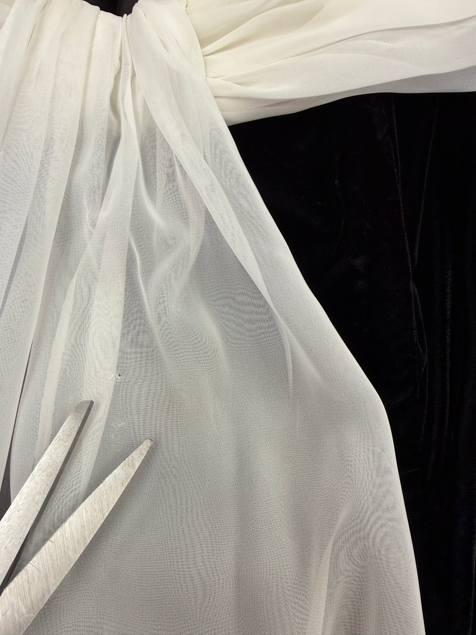 material: acetate and nylon velvet, polyester chiffon, acetate lining, zipper, boning