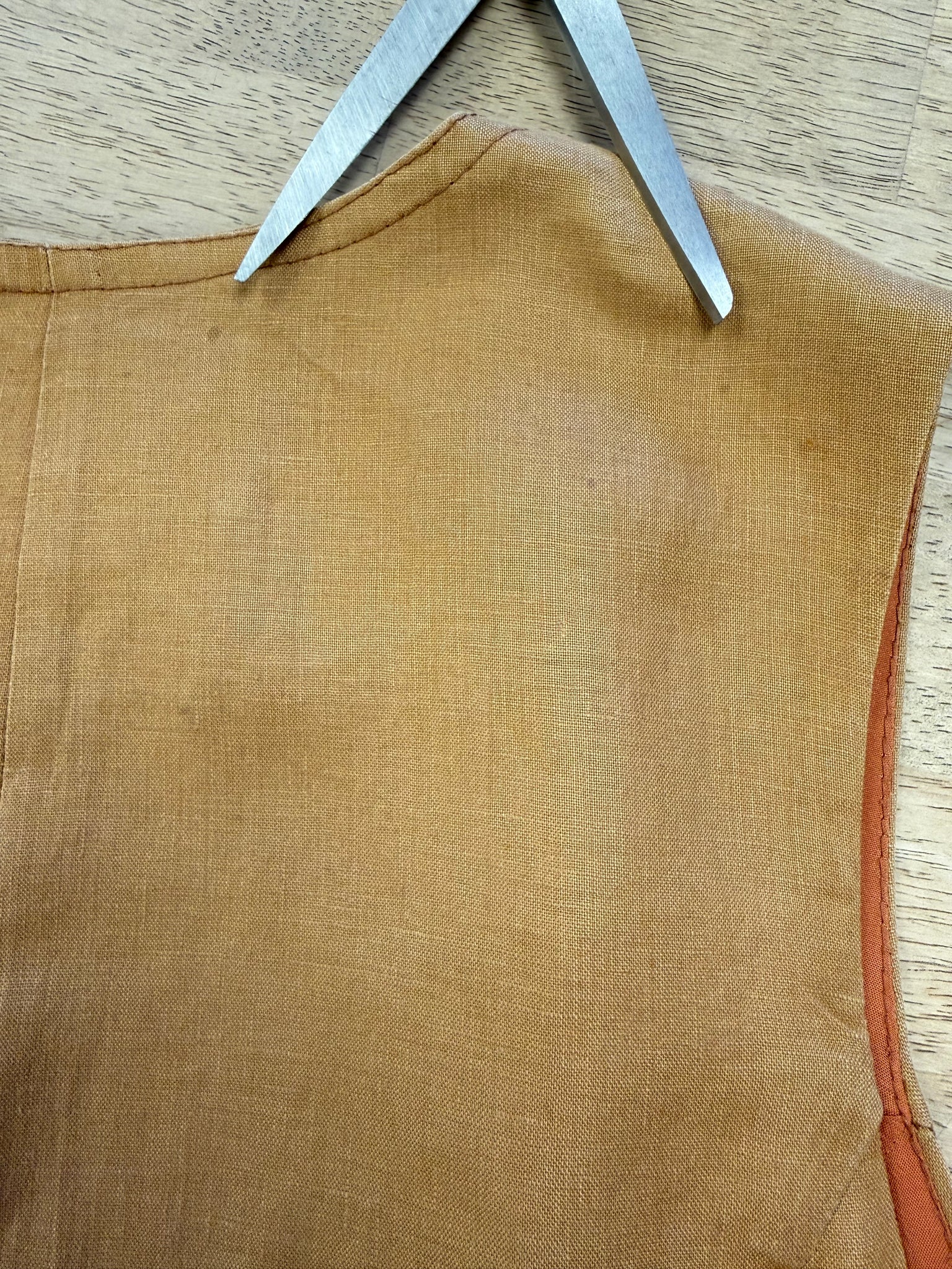 Great vintage condition: a few pinhead spots on the back of the vest around the neckline; a few pea size marks on the pants toward the bottom hem.