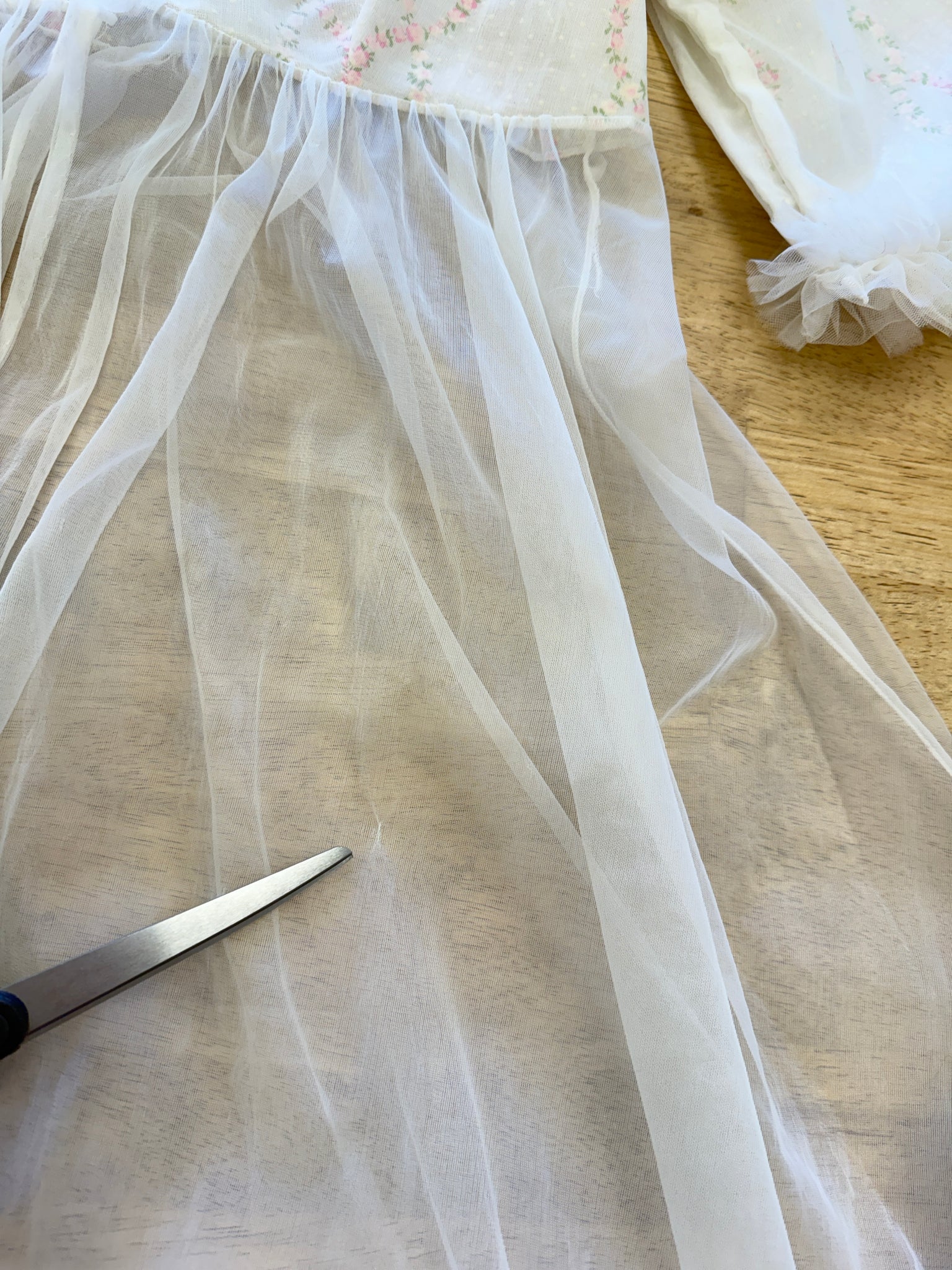 - Flocked floral print on the bodice and sleeves