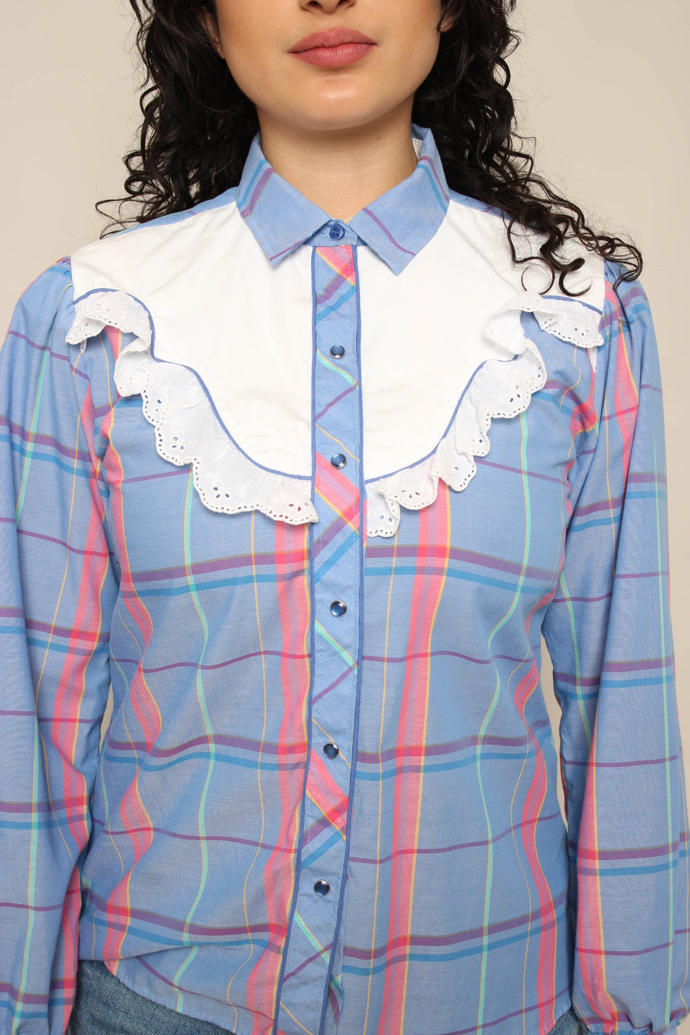 material: feels like a cotton and polyester blend, eyelet lace, snap buttons