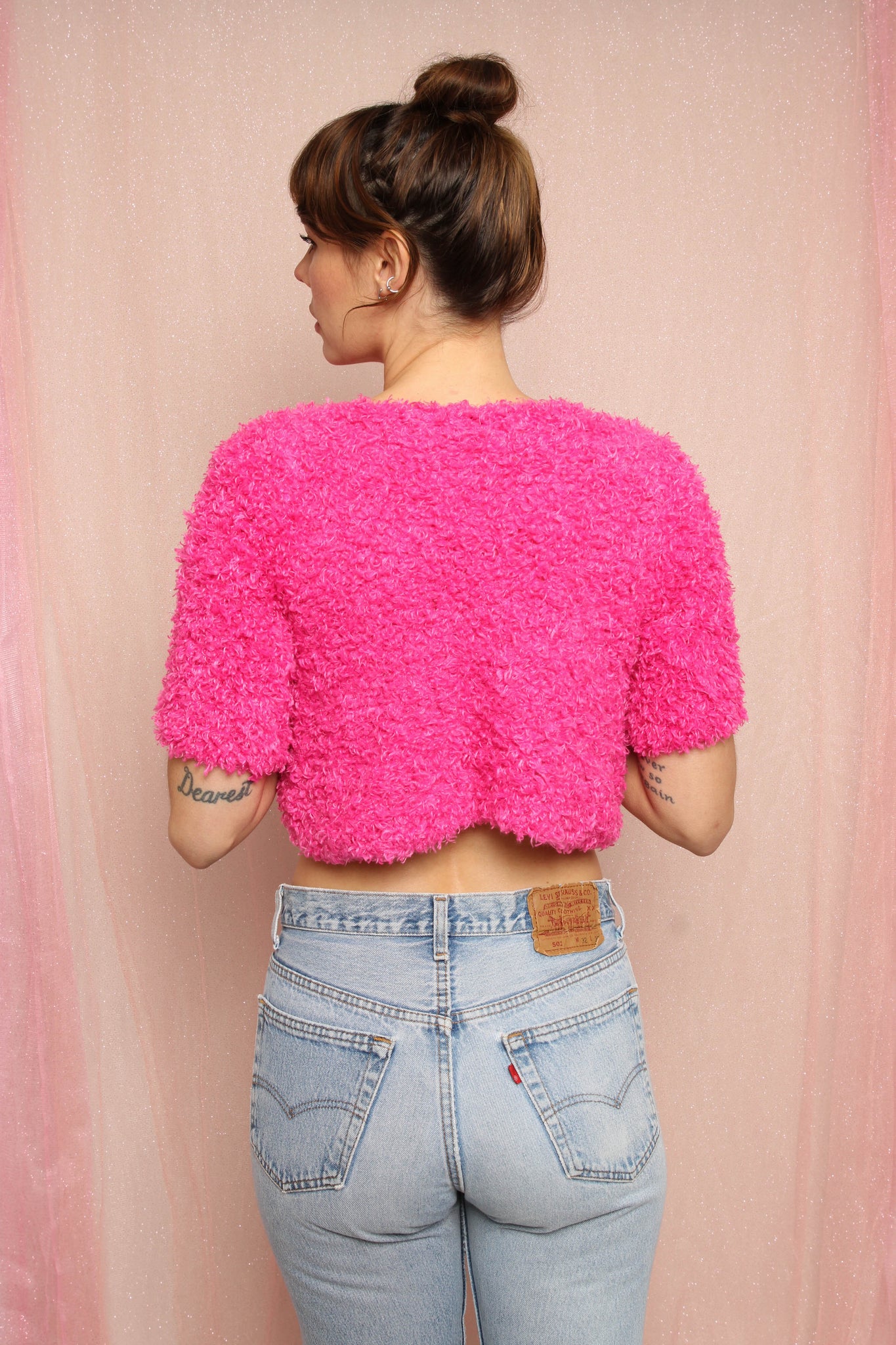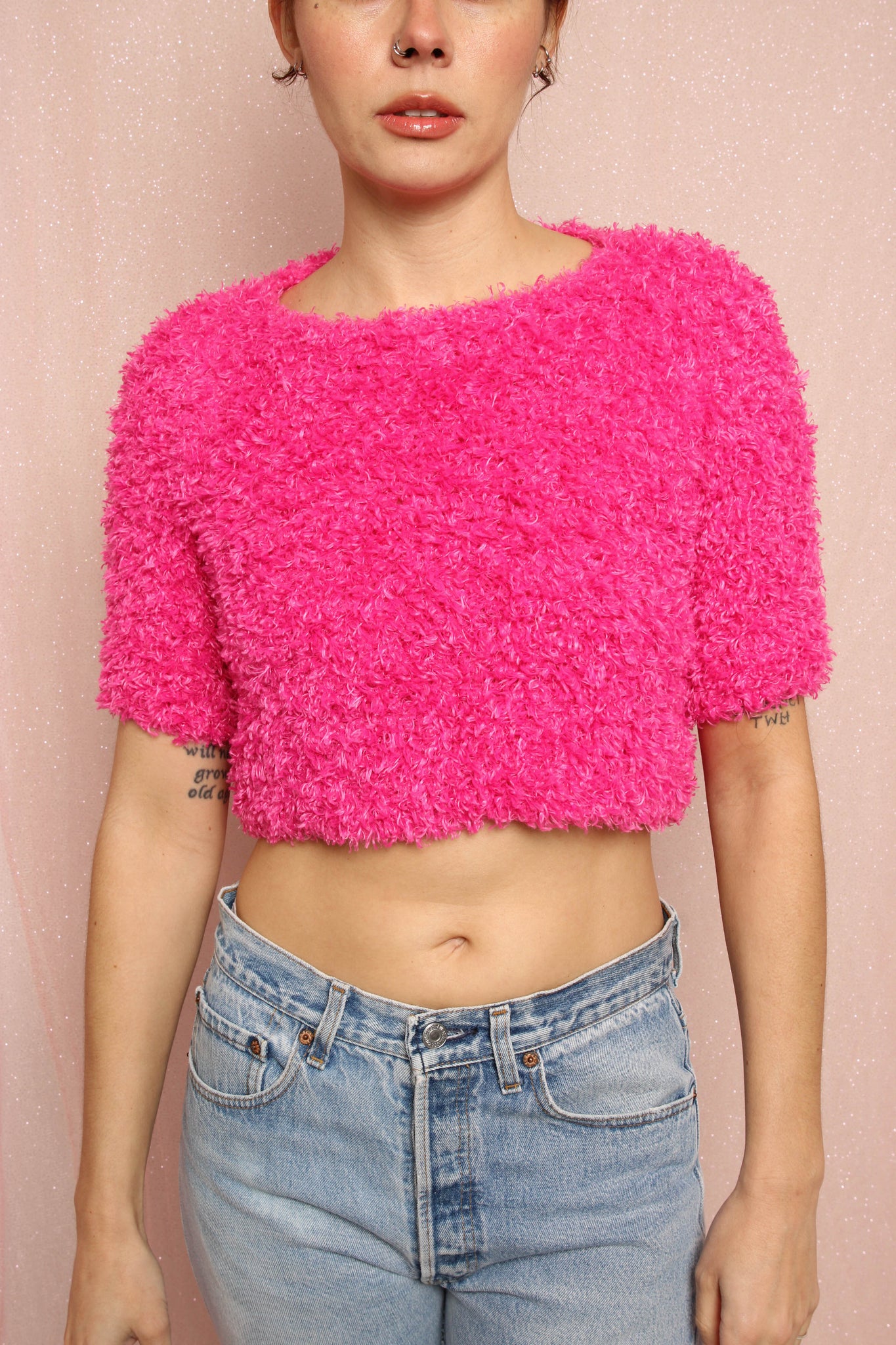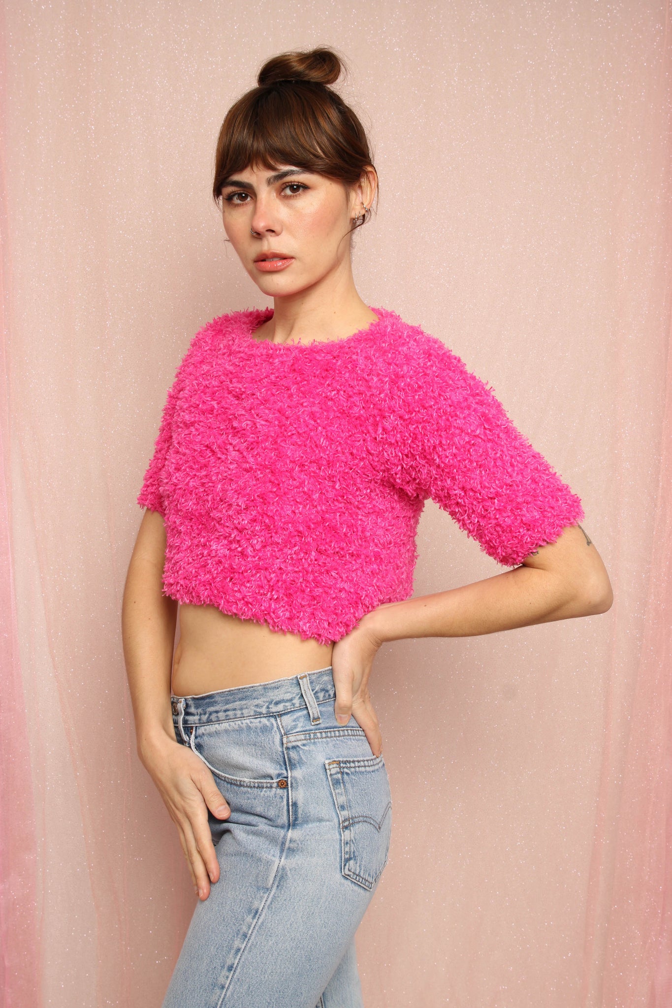 ❤️ 90s Pink Fuzzy Cropped Sweater