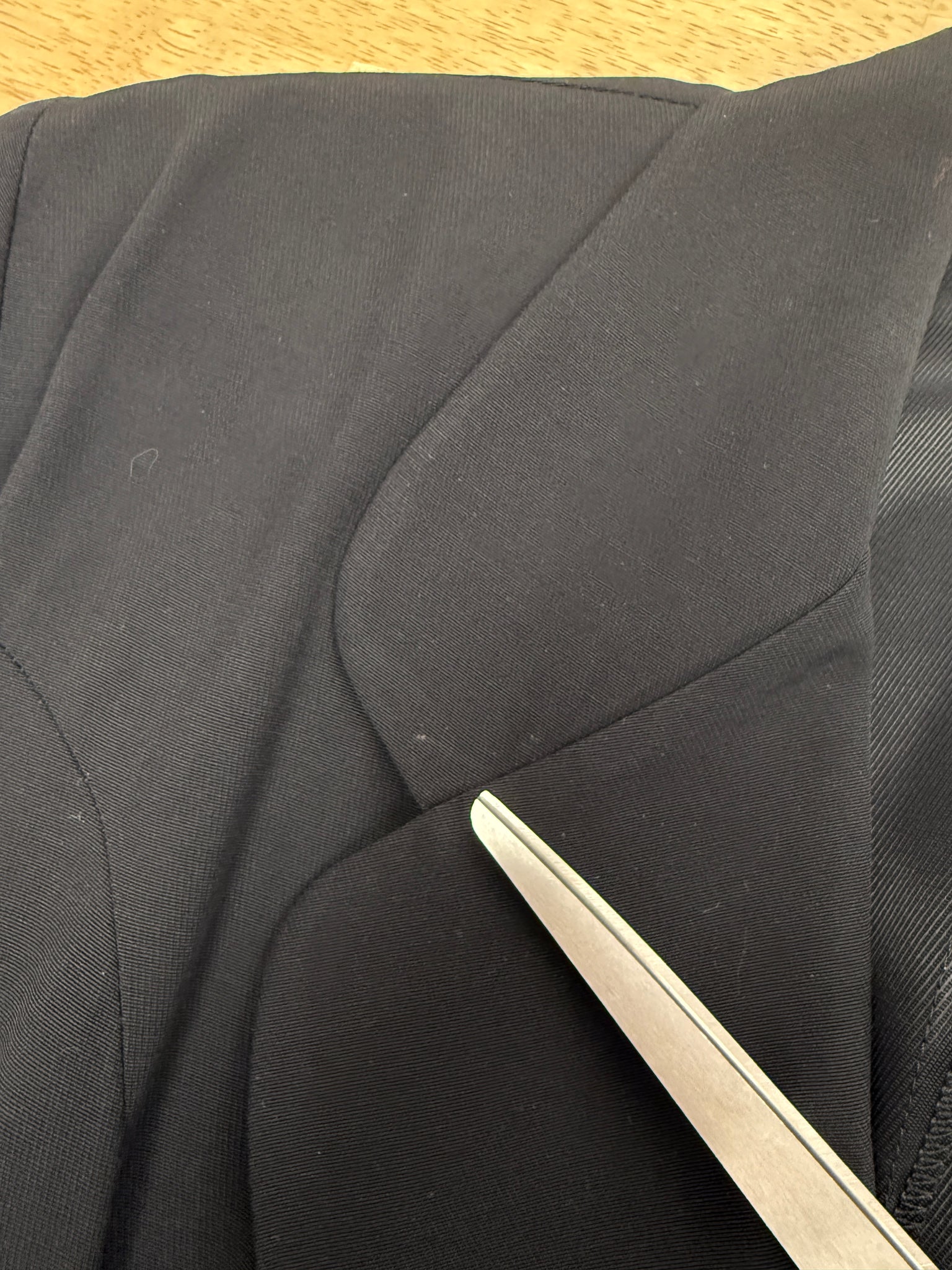 Great vintage condition: super faint mark on the right lapel; small area of tiny markings on the very far left side of the waist.